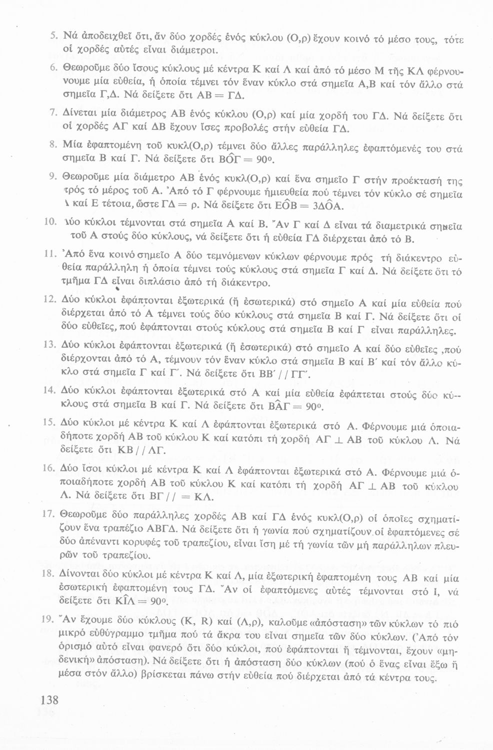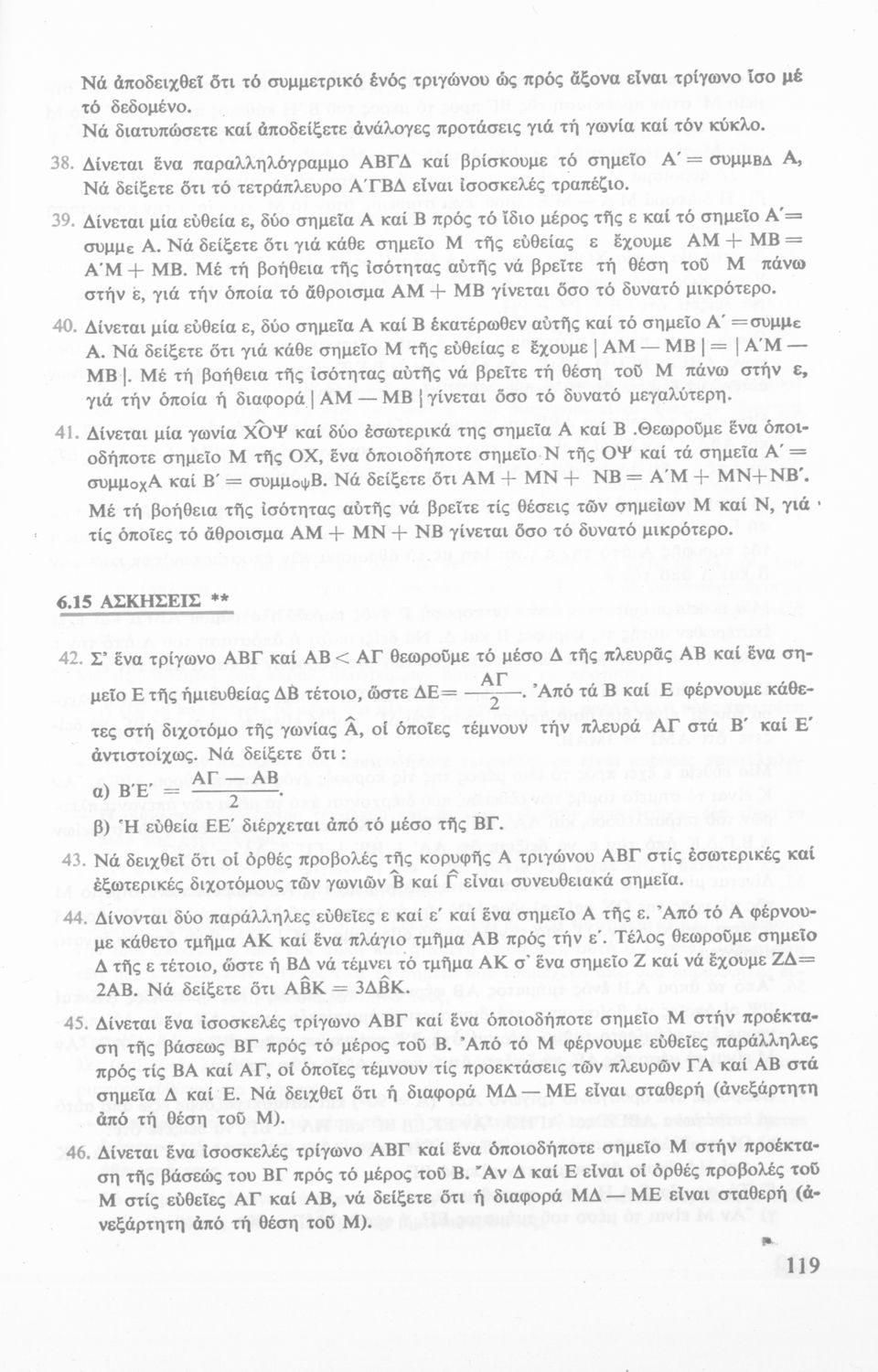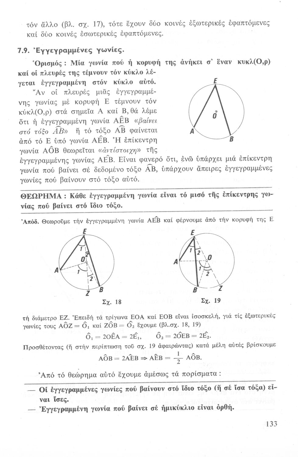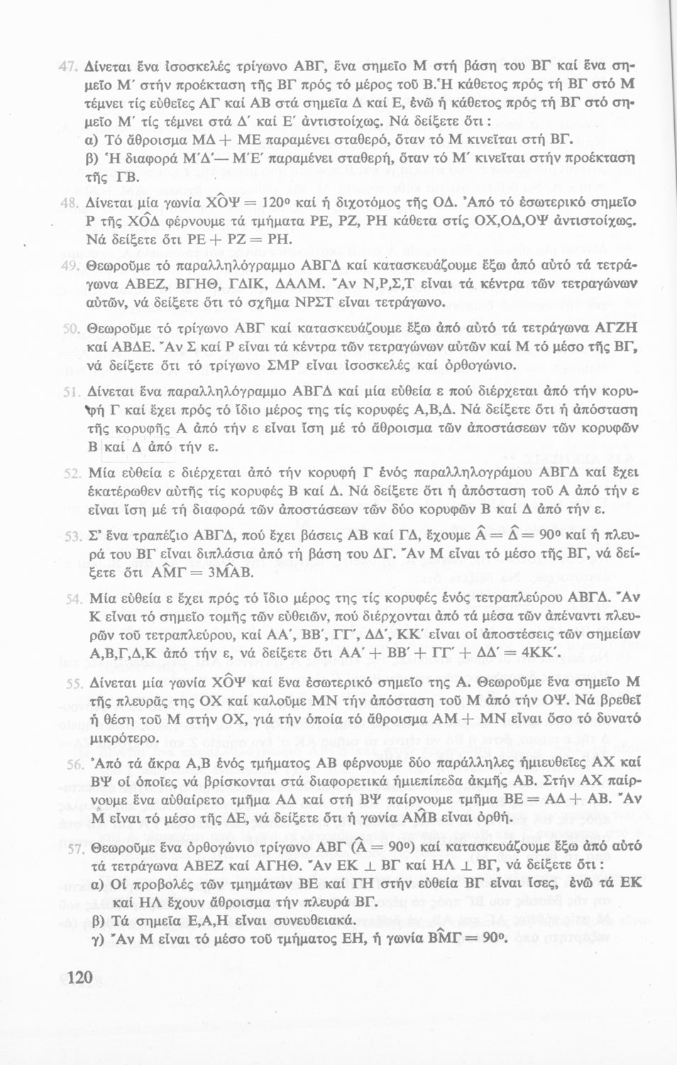 Σχολικό εγχειρίδιο Γεωμετρίας Α΄ Λυκείου χωρισμένο σε θεωρήματα, λυμένες ασκήσεις, ασκήσεις και επαναλήψεις κεφαλαίου. Περιέχει ένα παράρτημα με επαναληπτικά μαθήματα και ένα με ευρετήριο όρων.