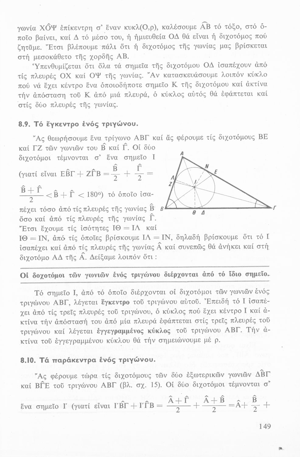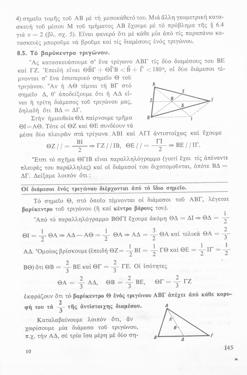 Σχολικό εγχειρίδιο Γεωμετρίας Α΄ Λυκείου χωρισμένο σε θεωρήματα, λυμένες ασκήσεις, ασκήσεις και επαναλήψεις κεφαλαίου. Περιέχει ένα παράρτημα με επαναληπτικά μαθήματα και ένα με ευρετήριο όρων.