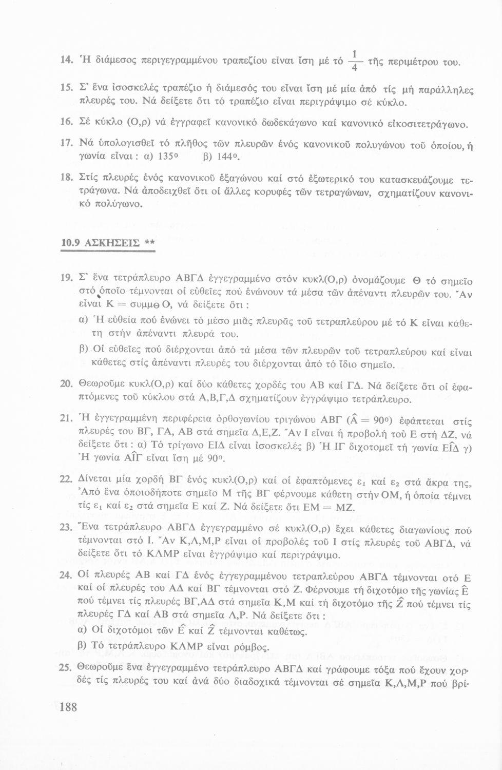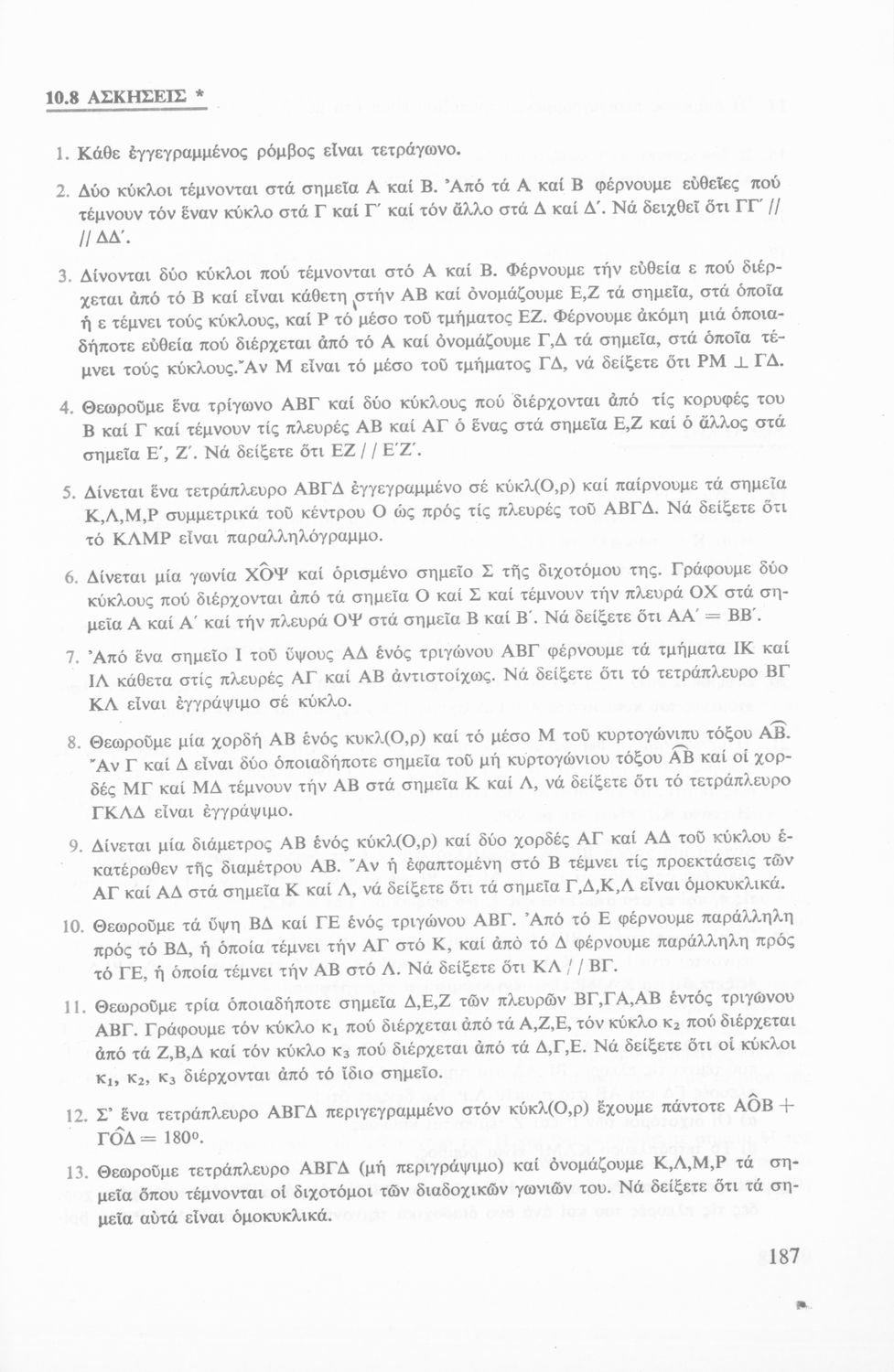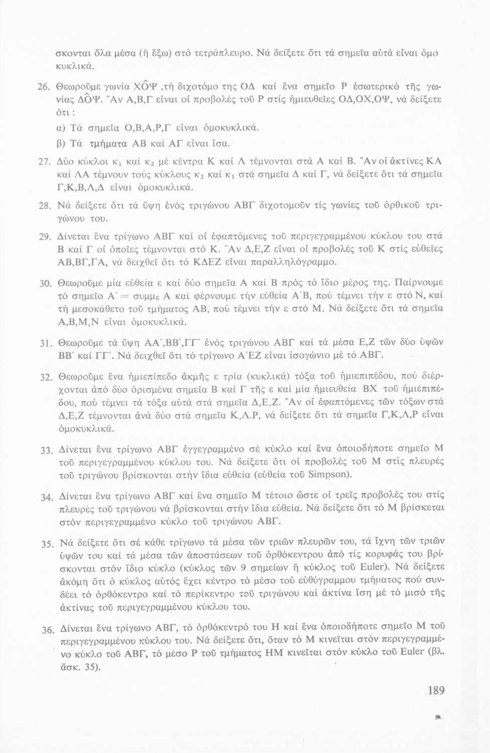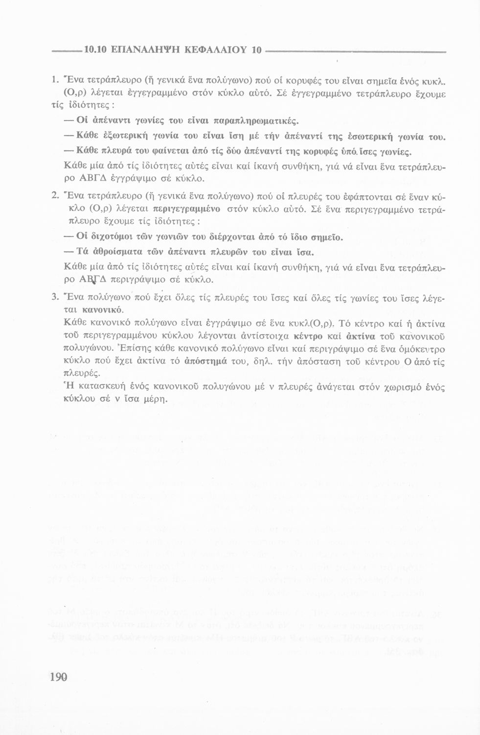Σχολικό εγχειρίδιο Γεωμετρίας Γ΄ Γυμνασίου χωρισμένο σε θεωρήματα, λυμένες ασκήσεις, ασκήσεις και επαναλήψεις κεφαλαίου. Περιέχει ένα παράρτημα με επαναληπτικά μαθήματα και ένα με ευρετήριο όρων.