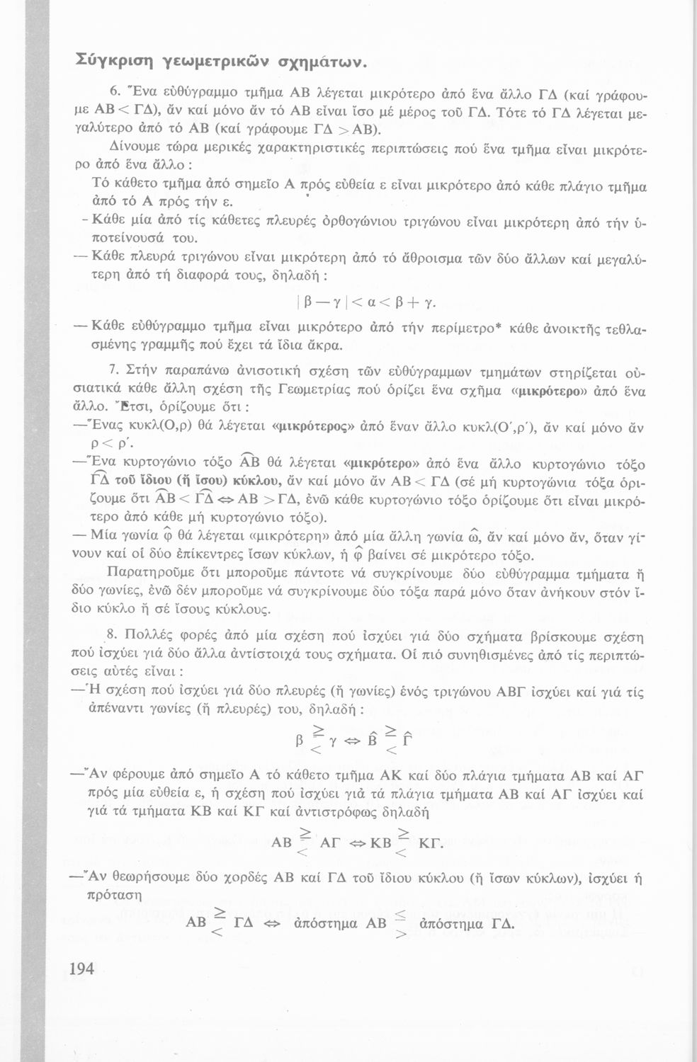 Σχολικό εγχειρίδιο Γεωμετρίας για τις Α΄, Β΄, Γ΄ Γυμνασίου που είναι χωρισμένο σε Επιπεδομετρία και Στερεομετρία και περιλαμβάνει θεωρία και ασκήσεις.
