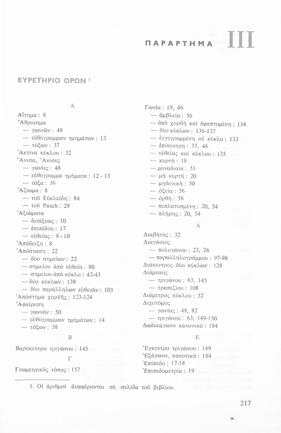 Σχολικό εγχειρίδιο Γεωμετρίας Γ΄ Γυμνασίου χωρισμένο σε θεωρήματα, λυμένες ασκήσεις, ασκήσεις και επαναλήψεις κεφαλαίου. Περιέχει ένα παράρτημα με επαναληπτικά μαθήματα και ένα με ευρετήριο όρων.