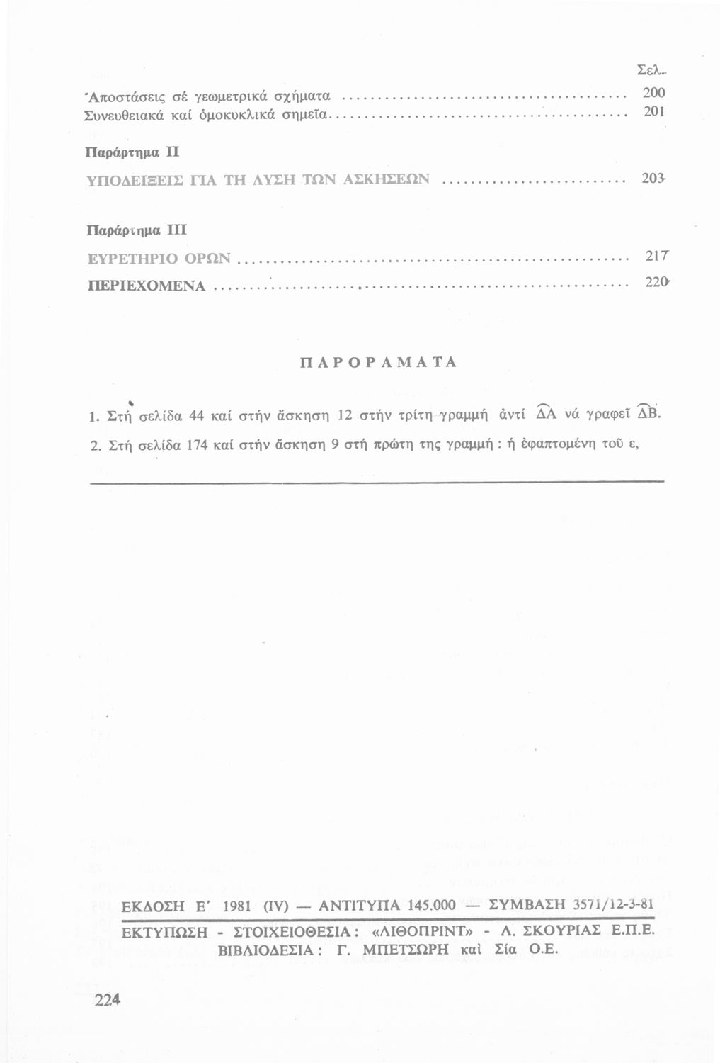 Μαθητικό βοήθημα Γεωμετρίας για τα Γυμνάσια και Λύκεια που περιέχει λύσεις σε 375 ασκήσεις και προβλήματα που περιλαμβάνονται στο πρώτο βιβλίο Θεωρητικής Γεωμετρίας του Π.Γ. Τόγκα.