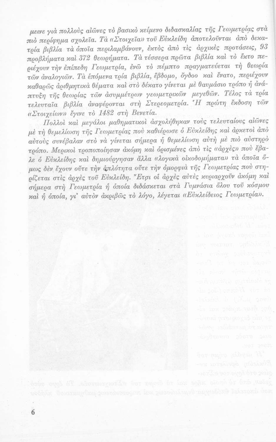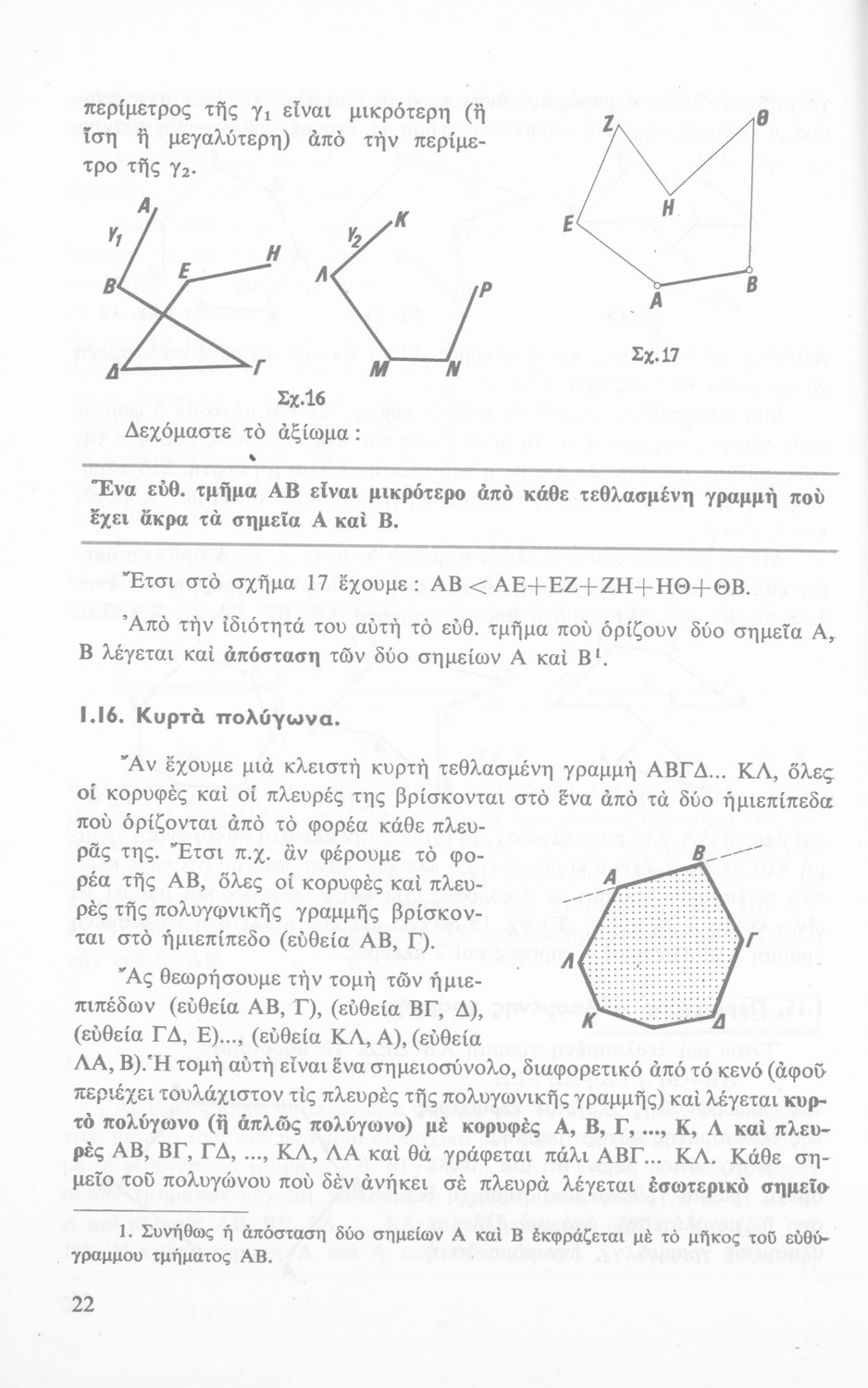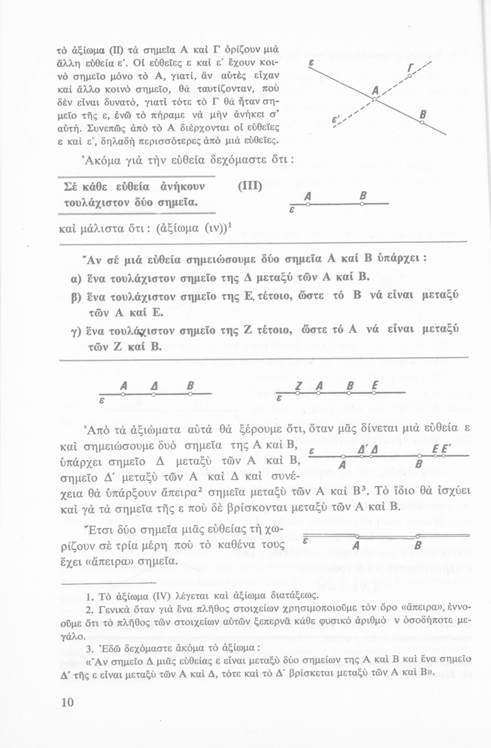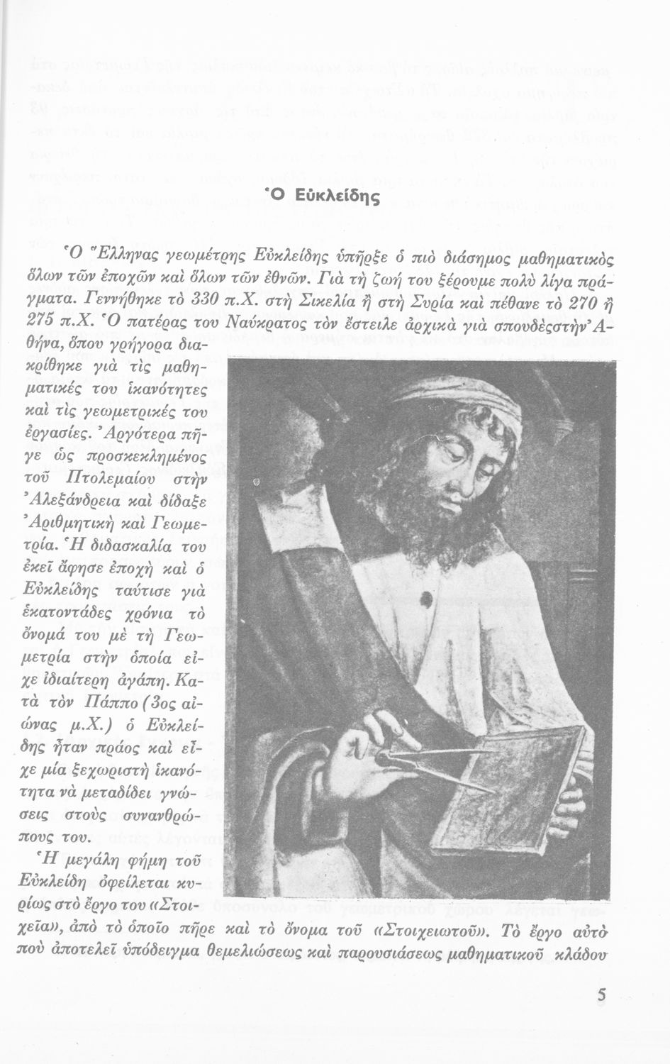 Σχολικό εγχειρίδιο Γεωμετρίας Α΄ Λυκείου χωρισμένο σε θεωρήματα, λυμένες ασκήσεις, ασκήσεις και επαναλήψεις κεφαλαίου. Περιέχει ένα παράρτημα με επαναληπτικά μαθήματα και ένα με ευρετήριο όρων.