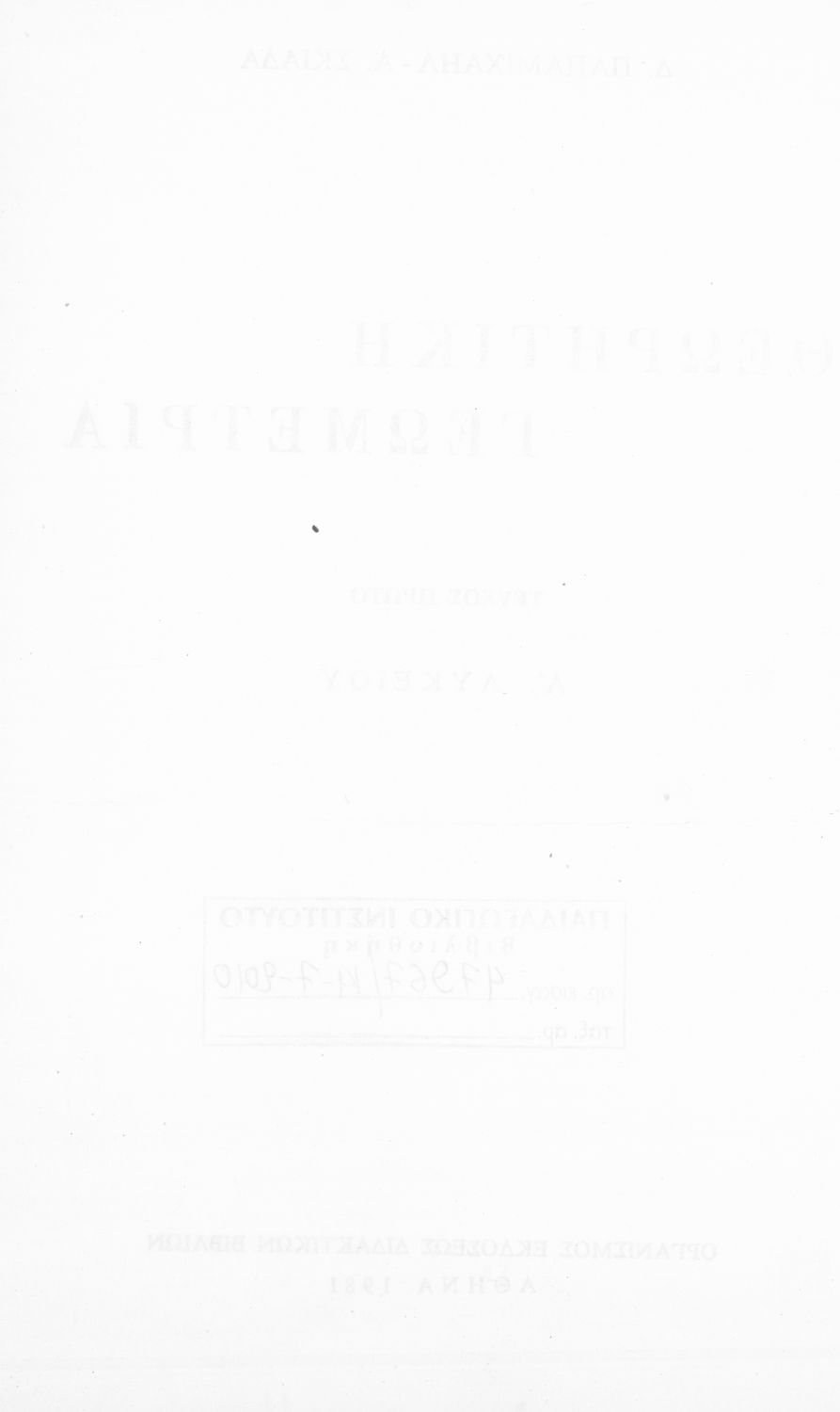 Εκδότης: Οργανισμός Εκδόσεως Διδακτικών Βιβλίων Έτος έκδοσης: 1981 Τόπος έκδοσης: Αθήνα Έκδοση: 5η Υπουργική απόφαση / Σύμβαση: 3571/12-3-1981 Έτος έγκρισης: 1981 |