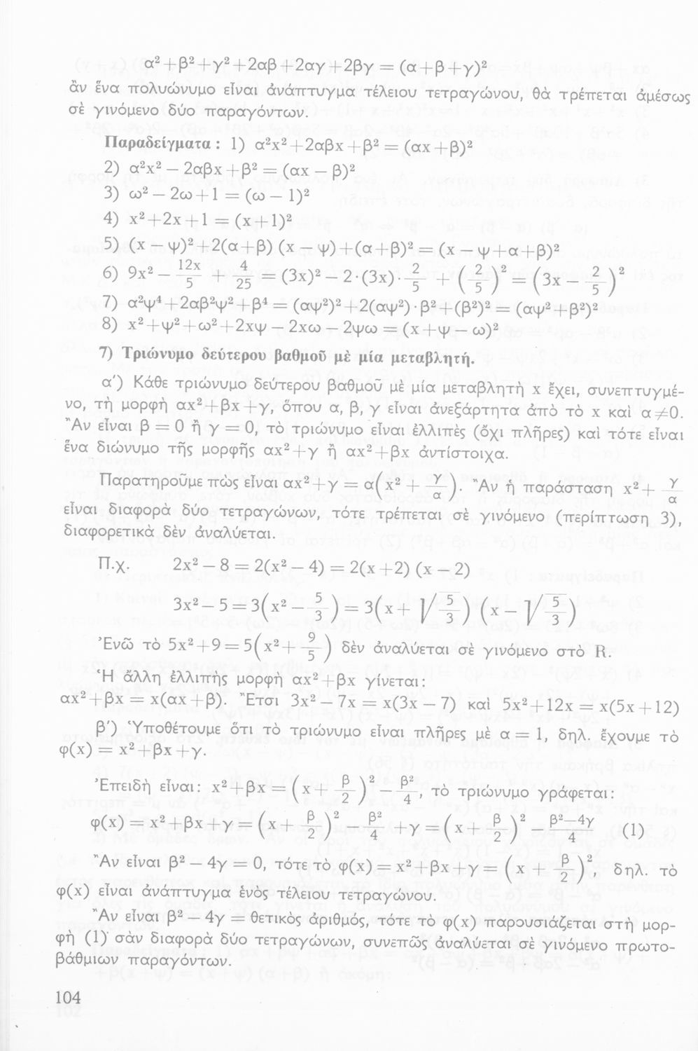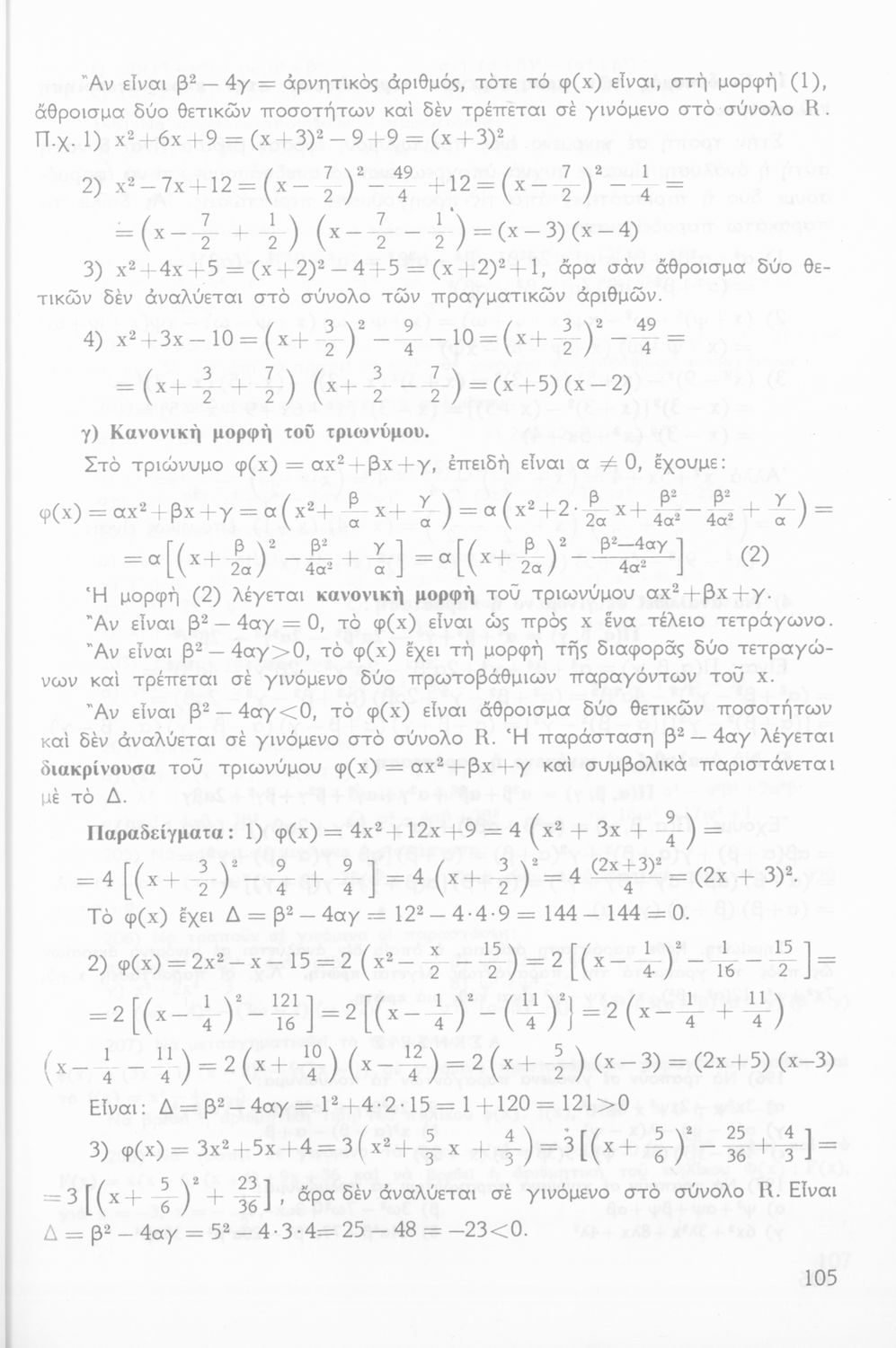 Σχολικό εγχειρίδιο μαθηματικών Γ΄ Γυμνασίου που περιλαμβάνει θεωρία, παραδείγματα και ασκήσεις. Φέρει το σύμβολο της δικτατορίας.