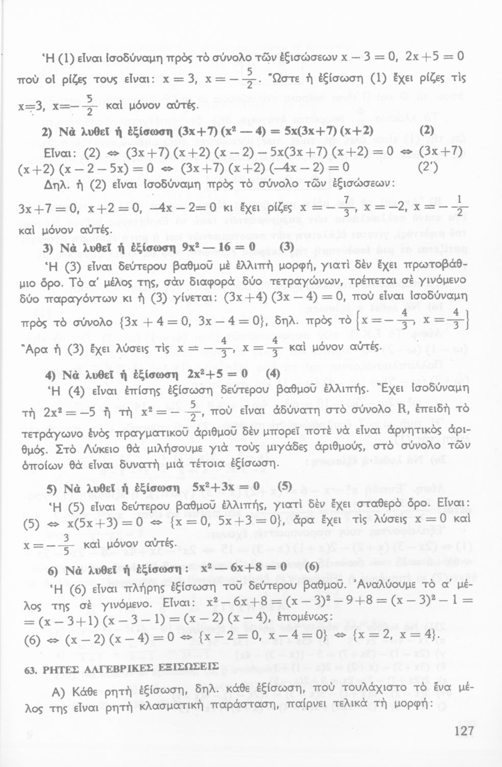 Σχολικό εγχειρίδιο μαθηματικών Γ΄ Γυμνασίου που περιλαμβάνει θεωρία, παραδείγματα και ασκήσεις. Φέρει το σύμβολο της δικτατορίας.