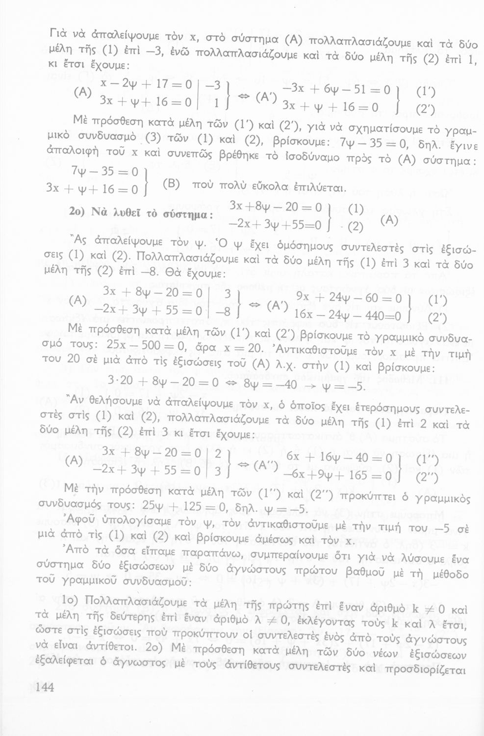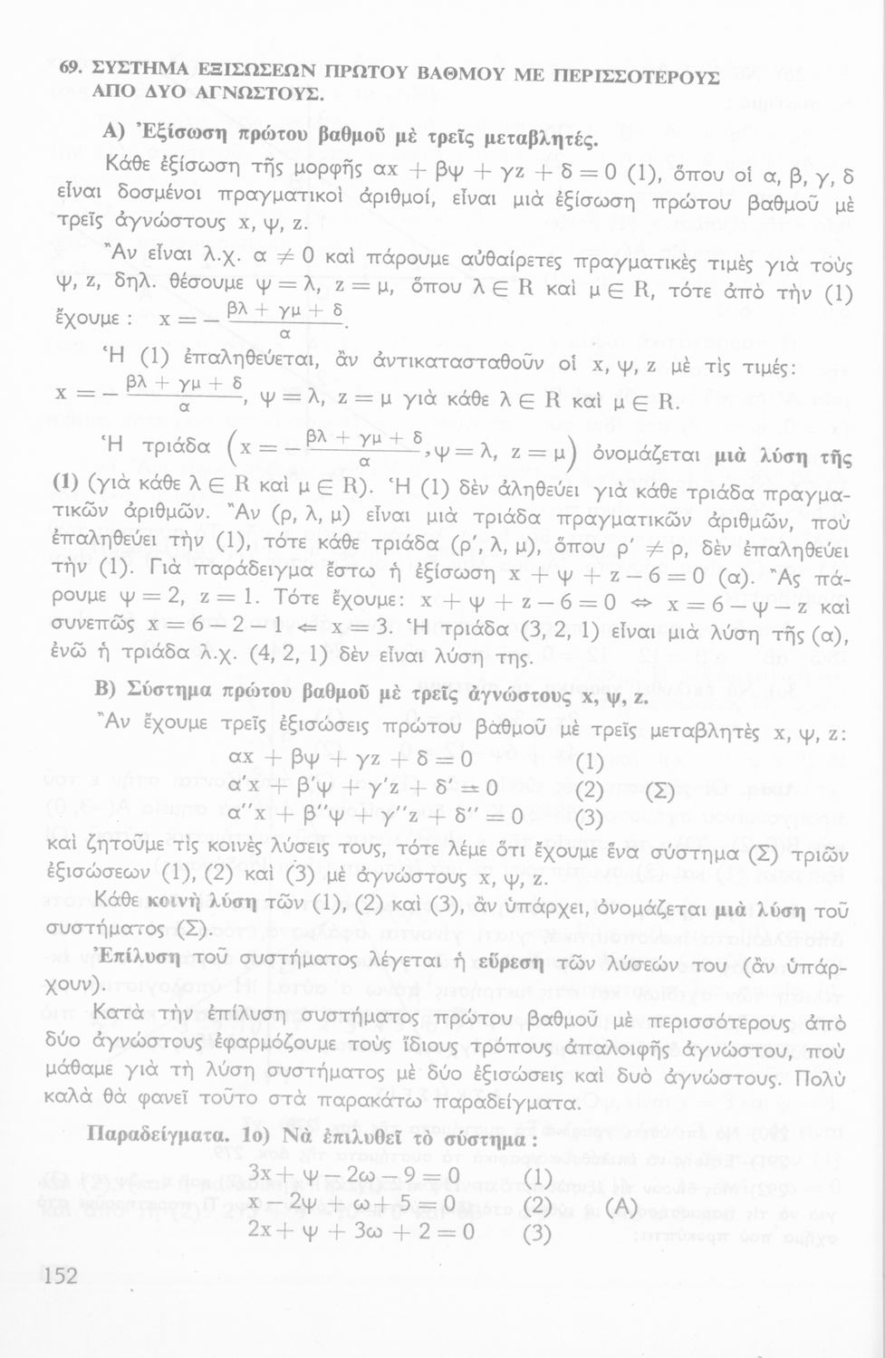 Σχολικό εγχειρίδιο μαθηματικών Γ΄ Γυμνασίου που περιλαμβάνει θεωρία, παραδείγματα και ασκήσεις. Φέρει το σύμβολο της δικτατορίας.
