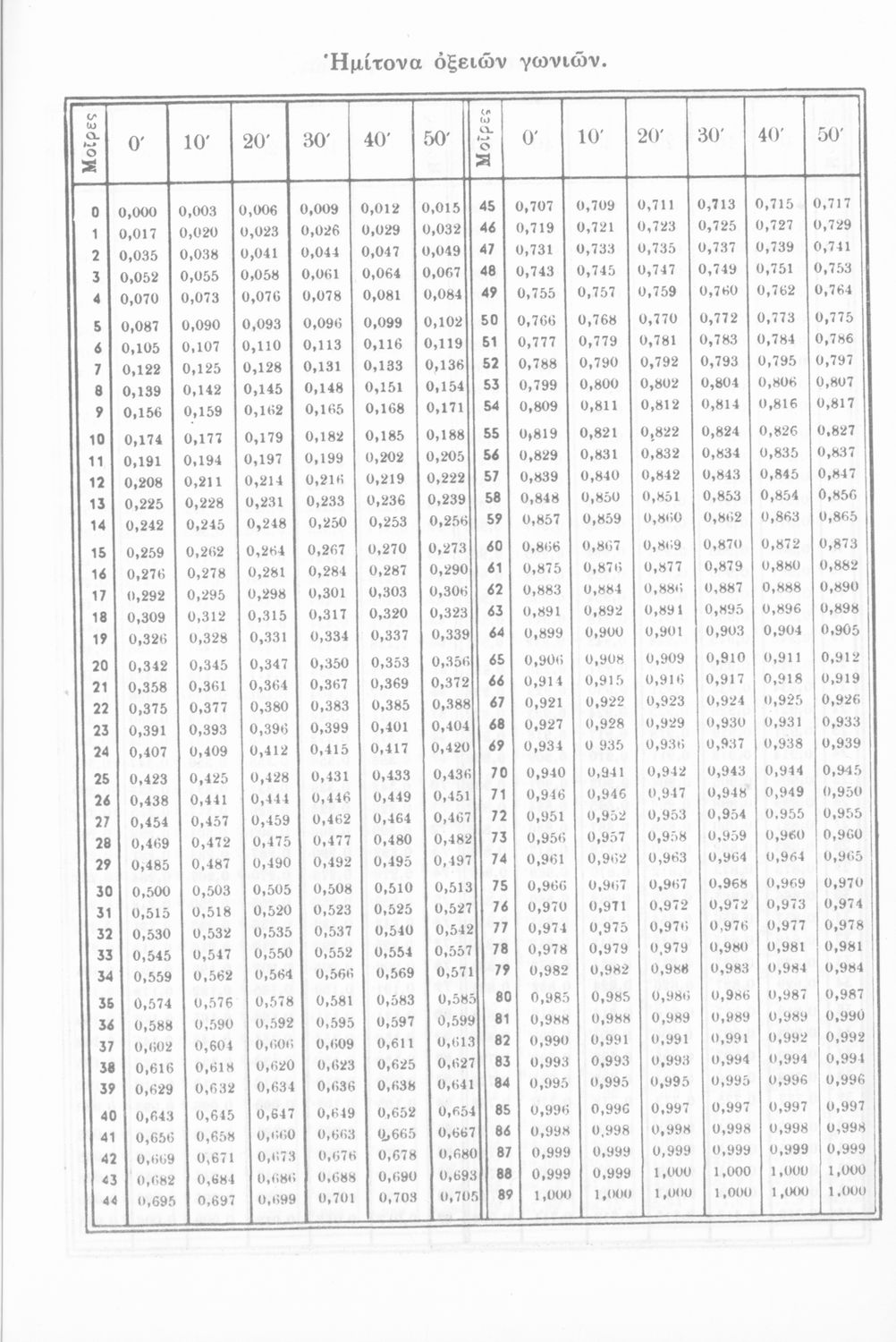 Σχολικό εγχειρίδιο Μαθηματικών για την Ε΄ Γυμνασίου, χωρισμένο σε προβλήματα, εφαρμογές και ασκήσεις, που εστιάζει στην Τριγωνομετρία. Φέρει το σύμβολο της δικτατορίας.