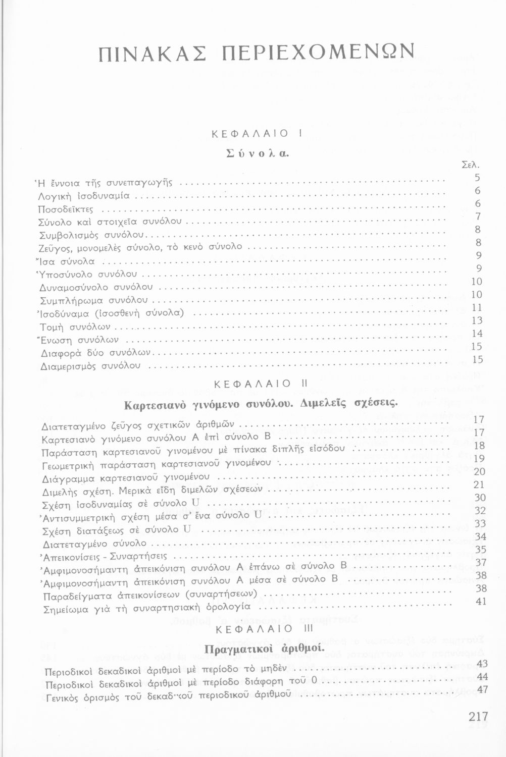 Σχολικό εγχειρίδιο Μαθηματικών Γ΄ Γυμνασίου που περιέχει θεωρία, παραδείγματα και ασκήσεις και περιλαμβάνει Άλγεβρα, Τριγωνομετρία και στοιχεία Περιγραφικής Στατιστικής. Το εγχειρίδιο μεταγλωττίστηκε από τον συγγραφέα και τον Αθ. Ματσούκα.