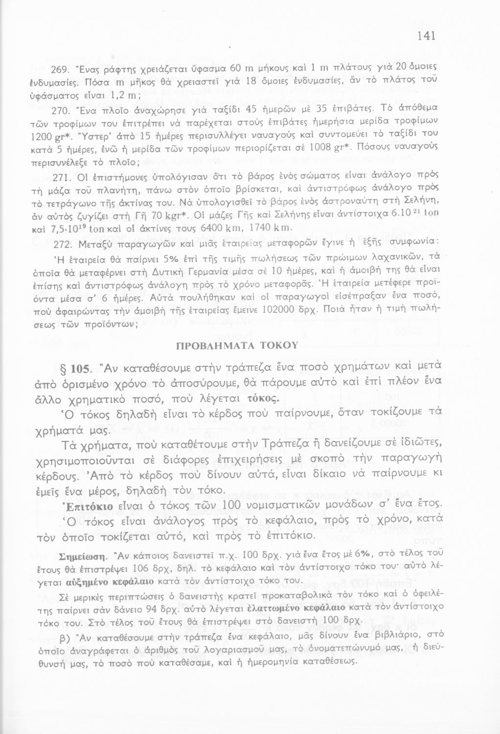 Σχολικό Εγχειρίδιο Μαθηματικών Β' Γυμνασίου που περιλαμβάνει αριθμητική με έμφαση στα σύνολα, τις μεθόδους υπολογισμού τόκων και επιτοκίων, και την μέθοδο των τριών, και γεωμετρία με έμφαση στα γεωμετρικά σχήματα και σώματα και τρόπους υπολογισμού τους. Το εγχειρίδιο μεταγλωττίστηκε από τους Ανδρ. Πατεράκη και Αθ. Ματσούκα.