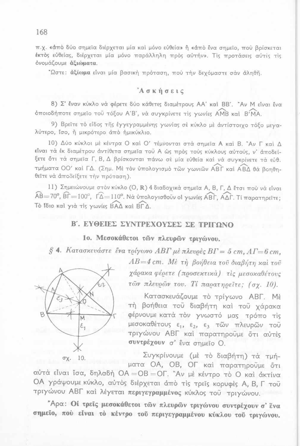 Σχολικό Εγχειρίδιο Μαθηματικών Β' Γυμνασίου που περιλαμβάνει αριθμητική με έμφαση στα σύνολα, τις μεθόδους υπολογισμού τόκων και επιτοκίων, και την μέθοδο των τριών, και γεωμετρία με έμφαση στα γεωμετρικά ...