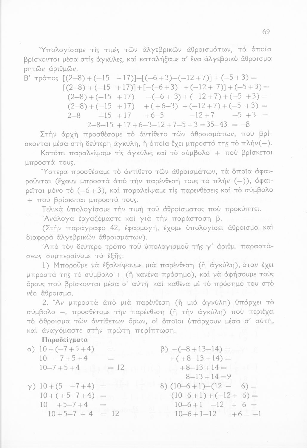 Σχολικό εγχειρίδιο Άλγεβρας Γυμνασίου που περιέχει θεωρία και ασκήσεις. Ο συγγραφέας ήταν υφηγητής στο Εθνικό Πανεπιστήμιο.