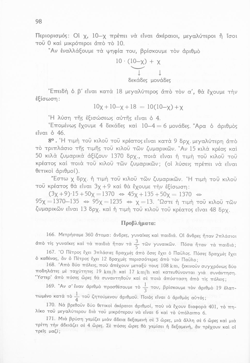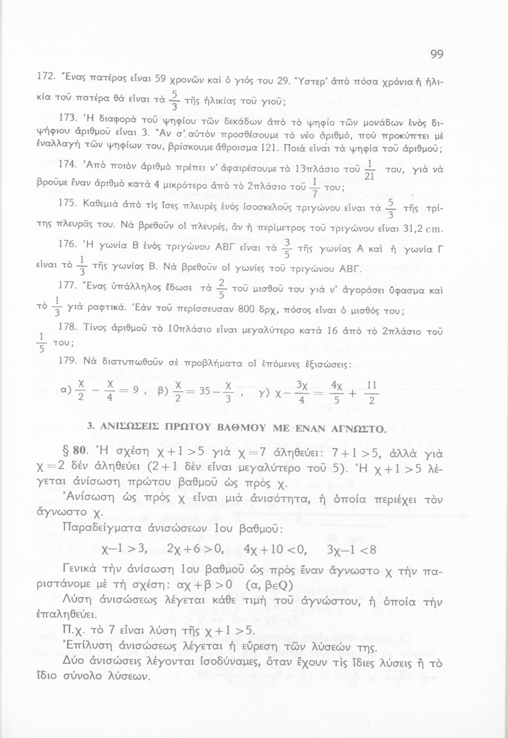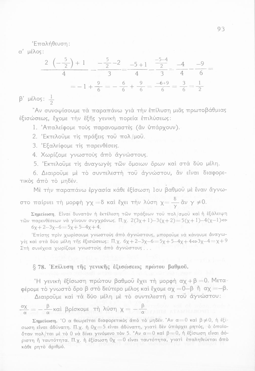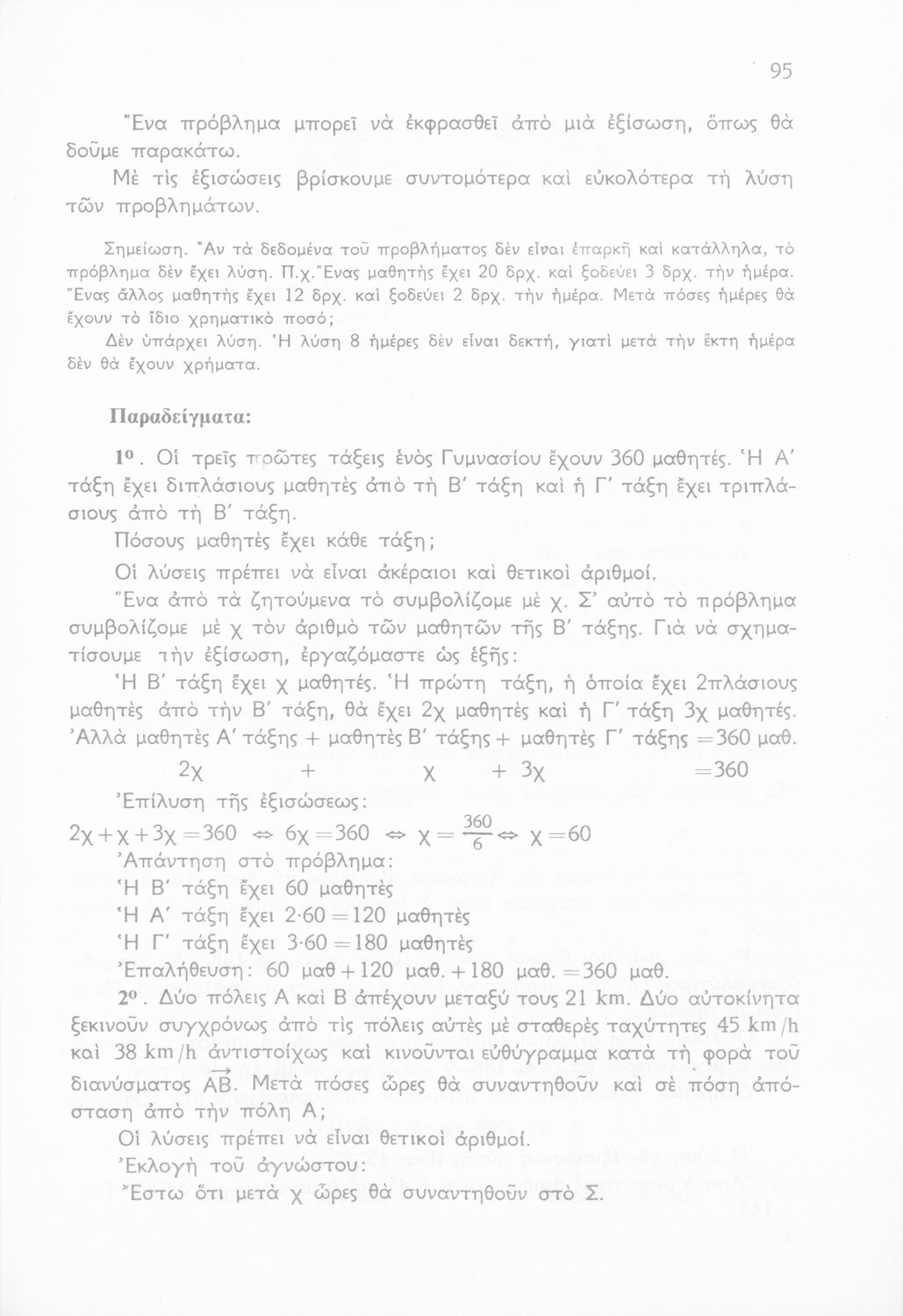 Σχολικό εγχειρίδιο Άλγεβρας Γυμνασίου που περιέχει θεωρία και ασκήσεις. Ο συγγραφέας ήταν υφηγητής στο Εθνικό Πανεπιστήμιο.