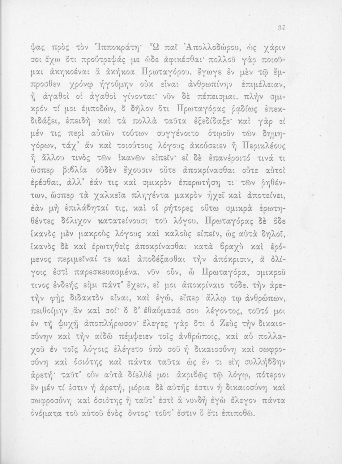 Τίτλος: Πλάτωνος Πρωταγόρας δια την ΣΤ΄ Τάξιν των Εξατάξιων Γυμνασίων
