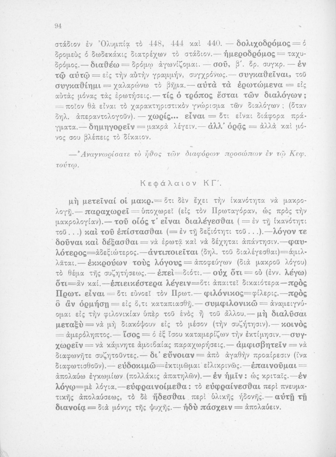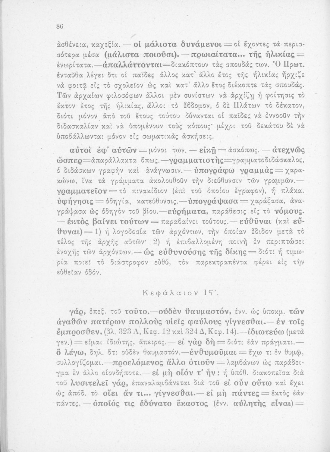 Σχολικό εγχειρίδιο Αρχαίων Ελληνικών ΣΤ΄ Εξαταξίου Γυμνασίου που περιλαμβάνει εισαγωγικό κείμενο για τη διδασκαλία του Σωκράτη και περίληψη του έργου, τα κεφάλαια Β΄ έως ΚΕ΄ και περιλήψεις των κεφαλαίων 26 έως