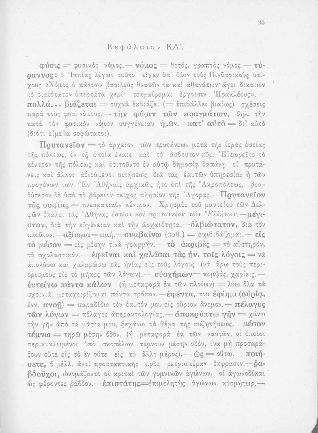 Σχολικό εγχειρίδιο Αρχαίων Ελληνικών για τη ΣΤ΄ τάξη των Εξαταξίων Γυμνασίων που περιλαμβάνει σύντομο βιογραφικό του Πλάτωνα, εισαγωγή στην προσωκρατική φιλοσοφία και στην φιλοσοφία του Πλάτωνα, αποσπάσματα ...