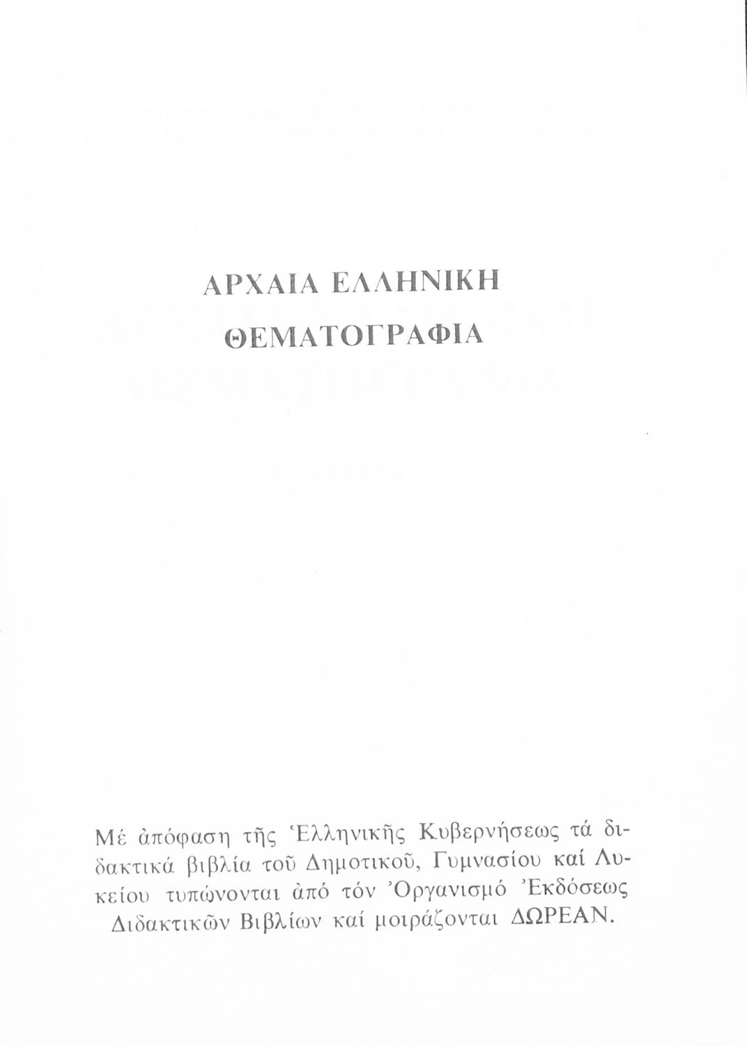 Κωδικός αναγνώρισης: 02-00269 Τίτλος: Αρχαία ελληνική θεματογραφία Γ΄ Λυκείου Συγγραφέας: Υπουργείο Εθνικής Παιδείας & Θρησκευμάτων Εικονογράφος: Τάσος Μουσταφέλλος Μέγεθος και υπόστρωμα: Παιδαγωγικό βοήθημα, μαλακό εξώφυλλο, 50 σελίδες. Διακοσμητικά στοιχεία (έγχρωμα). |