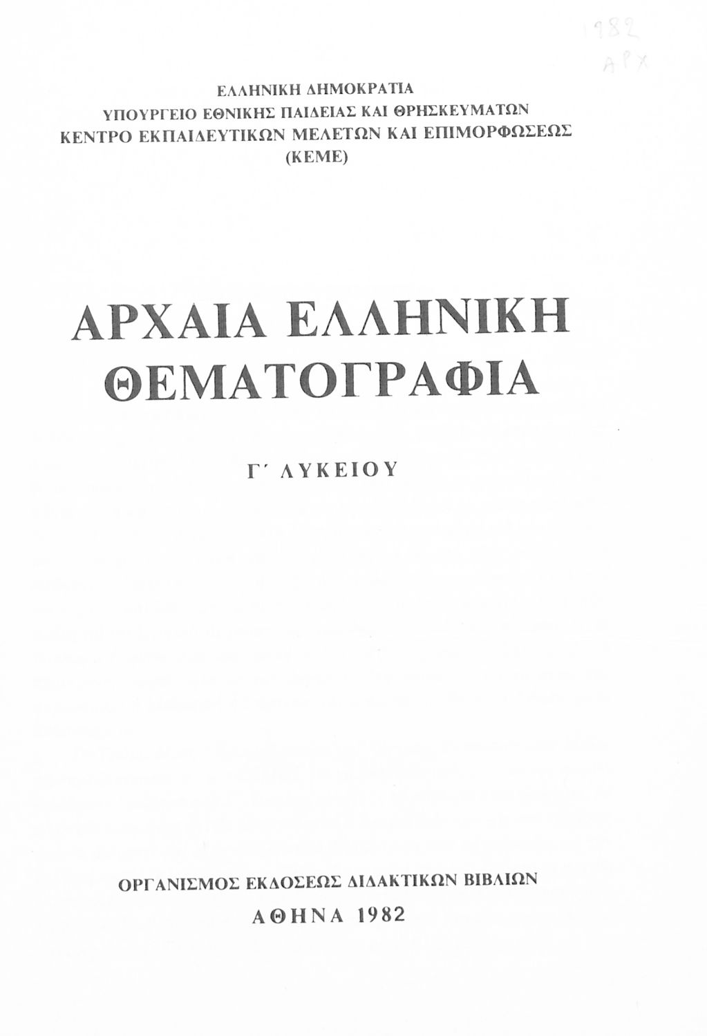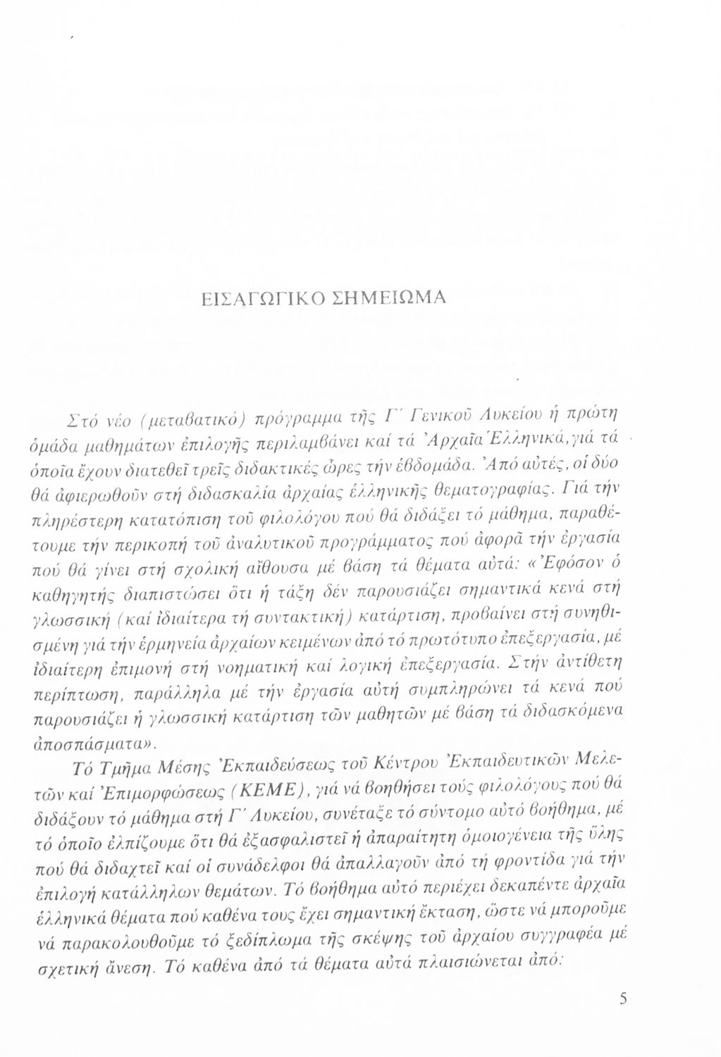 Παιδαγωγικό βοήθημα Αρχαίων Ελληνικών Γ΄ Λυκείου που είχε ως στόχο να βοηθήσει τους φιλολόγους στην κατάρτιση της διδακτέας ύλης και την επιλογή των κατάλληλων θεμάτων.