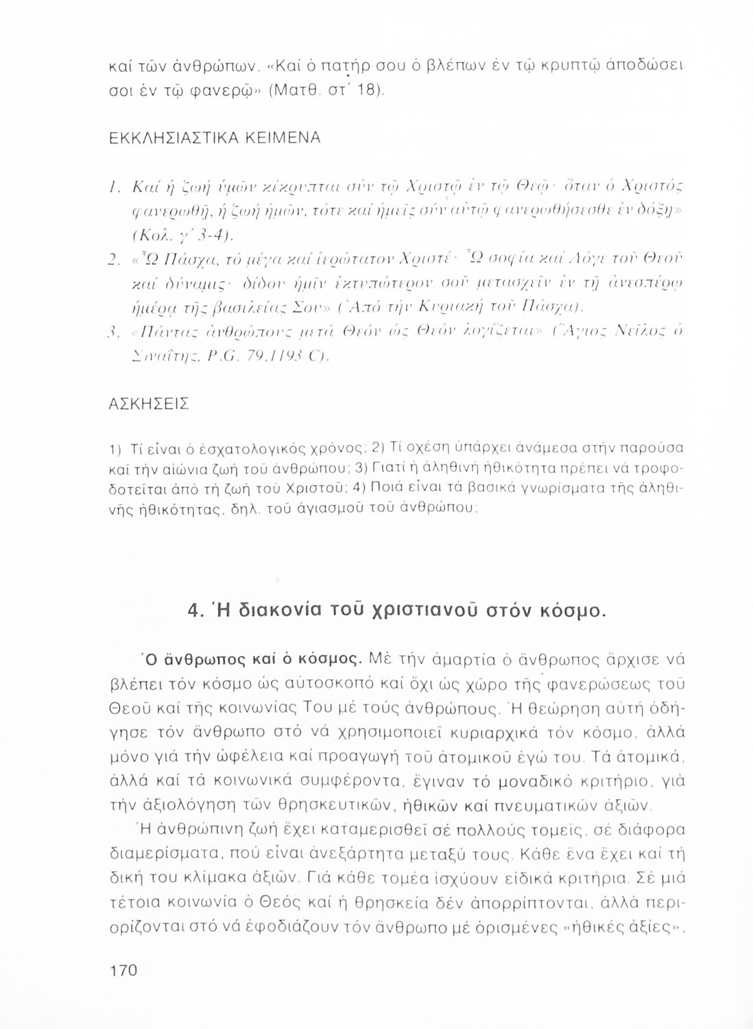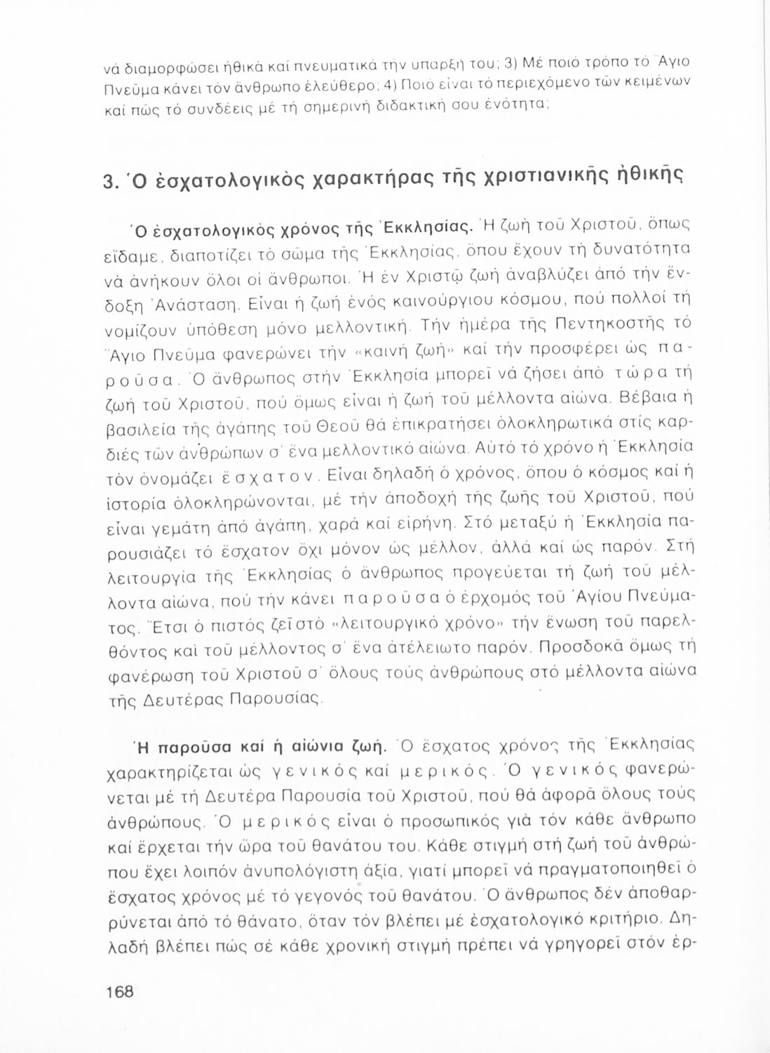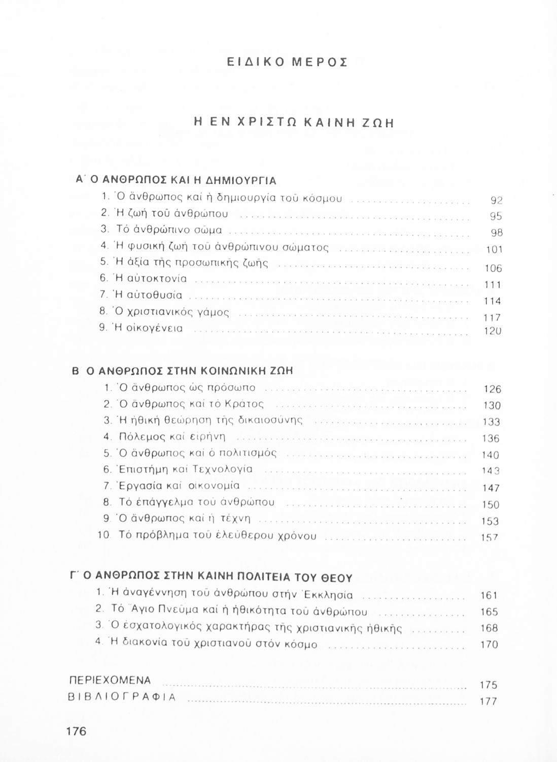 Βαθμίδα εκπαίδευσης: Δευτεροβάθμια Τάξη: Γ' Λυκείου Μάθημα: Θρησκευτικά Γλώσσα: Δημοτική Παρουσίαση περιεχομένου: Σχολικό εγχειρίδιο Θρησκευτικών Γ΄ Λυκείου που πραγματεύεται ζητήματα Χριστιανικής ηθικής από φιλοσοφική σκοπιά. |