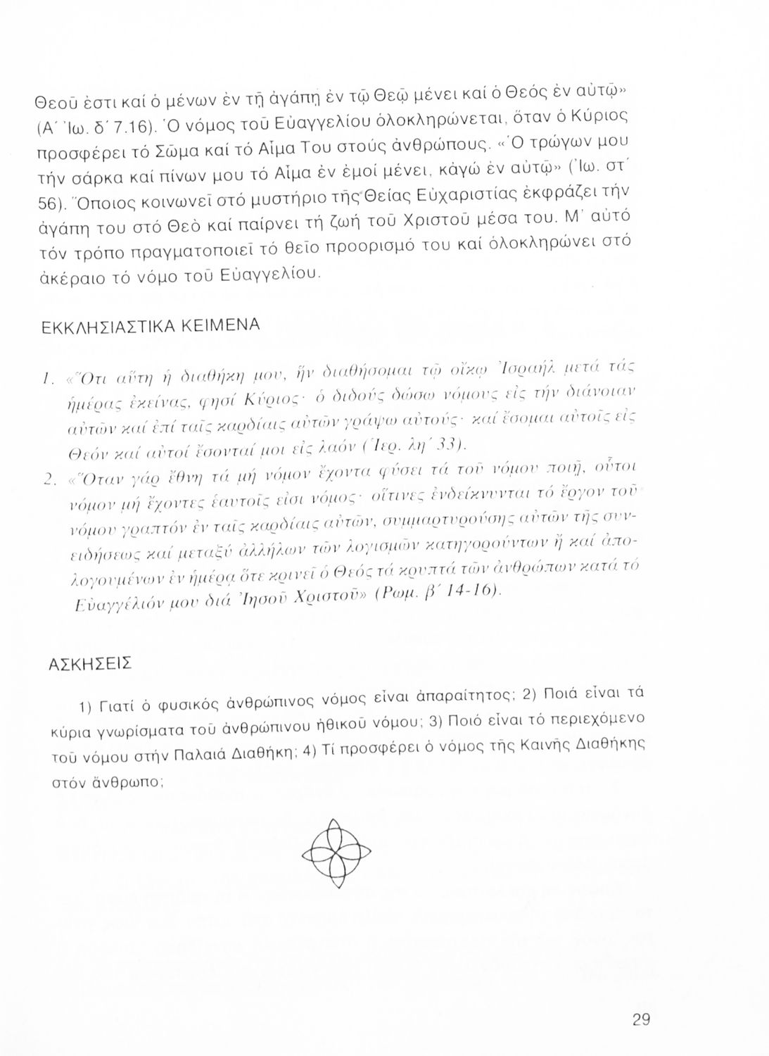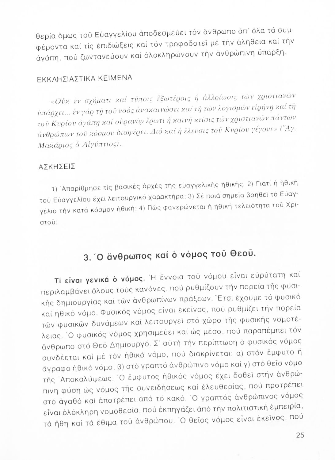 Σχολικό εγχειρίδιο Θρησκευτικών Γ΄ Λυκείου που πραγματεύεται ζητήματα Χριστιανικής ηθικής από φιλοσοφική σκοπιά.