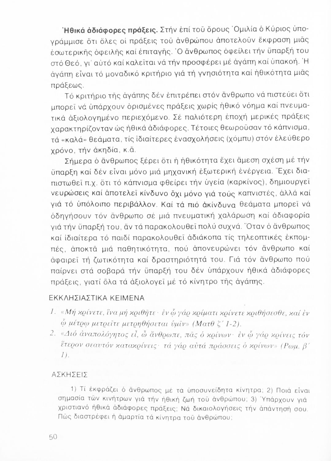 Σχολικό εγχειρίδιο Θρησκευτικών Γ΄ Λυκείου που πραγματεύεται ζητήματα Χριστιανικής ηθικής από φιλοσοφική σκοπιά.