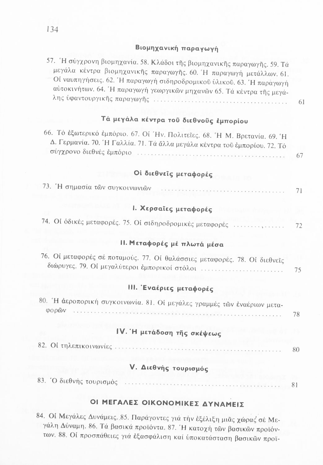 Σχολικό εγχειρίδιο Γεωγραφίας Α΄ Λυκείου που περιλαμβάνει εισαγωγή στη φυσική και οικονομική γεωγραφία και ανθρωπογεωγραφία και εστιάζει στη σχέση του ανθρώπου με το φυσικό περιβάλλον και τη γεωργική, κτηνοτροφική, δασική, μεταλλουργική και βιομηχανική παραγωγή. Περιέχει και μια γενική επισκόπηση της Ελλάδας και της οικονομικής της δραστηριότητας και αναφορά στα σύγχρονα προβλήματα της ανθρωπότητας.