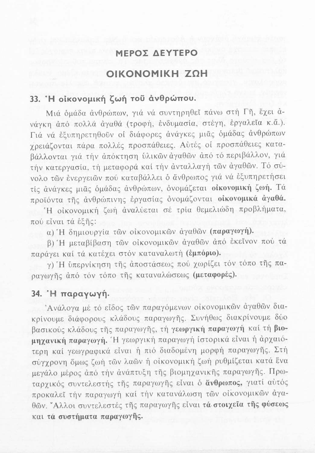 Σχολικό εγχειρίδιο Γεωγραφίας Α΄ Λυκείου που περιλαμβάνει εισαγωγή στη φυσική και οικονομική γεωγραφία και ανθρωπογεωγραφία και εστιάζει στη σχέση του ανθρώπου με το φυσικό περιβάλλον και τη γεωργική, κτηνοτροφική, δασική, μεταλλουργική και βιομηχανική παραγωγή. Περιέχει και μια γενική επισκόπηση της Ελλάδας και της οικονομικής της δραστηριότητας και αναφορά στα σύγχρονα προβλήματα της ανθρωπότητας.
