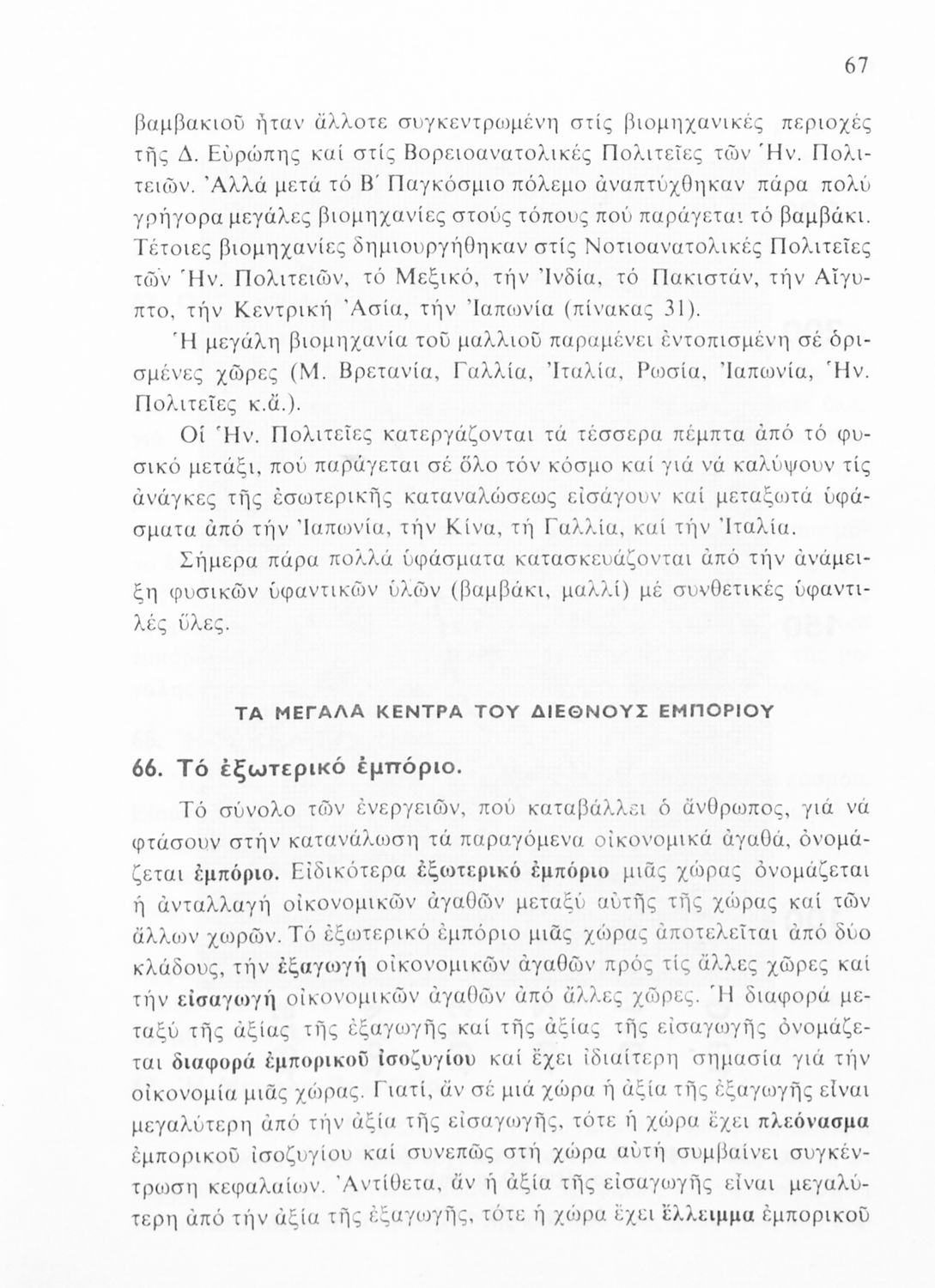 Σχολικό εγχειρίδιο Γεωγραφίας Α΄ Λυκείου που περιλαμβάνει εισαγωγή στη φυσική και οικονομική γεωγραφία και ανθρωπογεωγραφία και εστιάζει στη σχέση του ανθρώπου με το φυσικό περιβάλλον και τη γεωργική, κτηνοτροφική, δασική, μεταλλουργική και βιομηχανική παραγωγή. Περιέχει και μια γενική επισκόπηση της Ελλάδας και της οικονομικής της δραστηριότητας και αναφορά στα σύγχρονα προβλήματα της ανθρωπότητας.
