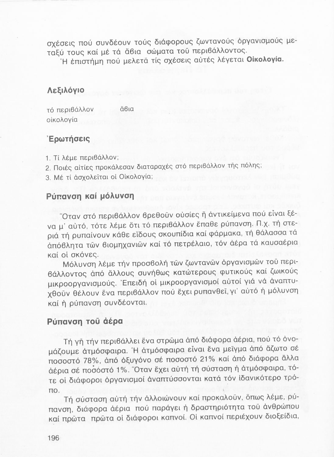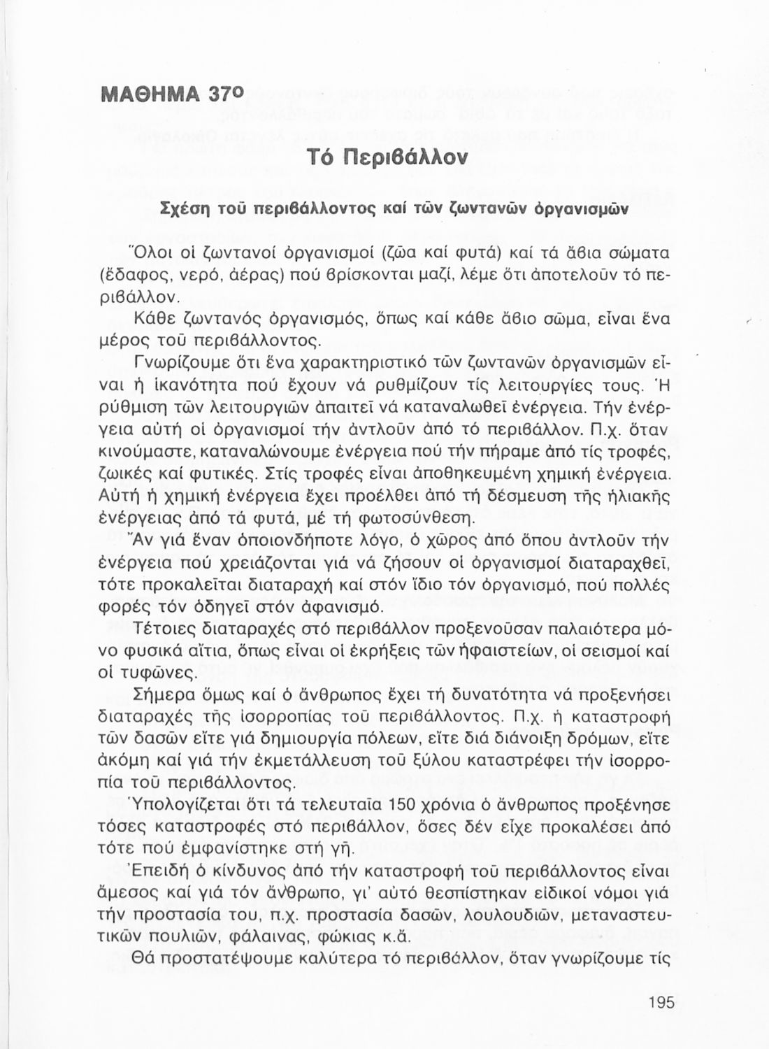Σχολικό εγχειρίδιο Φυσιογνωσίας της ΣΤ΄ Δημοτικού το οποίο μέσα από μεγάλη ποικιλία εικόνων εξοικειώνει τους μαθητές με τα διαφορετικά είδη φυτών και ζώων, τους τρόπους πολλαπλασιασμού τους και τα μέρη στα οποία συναντώνται.