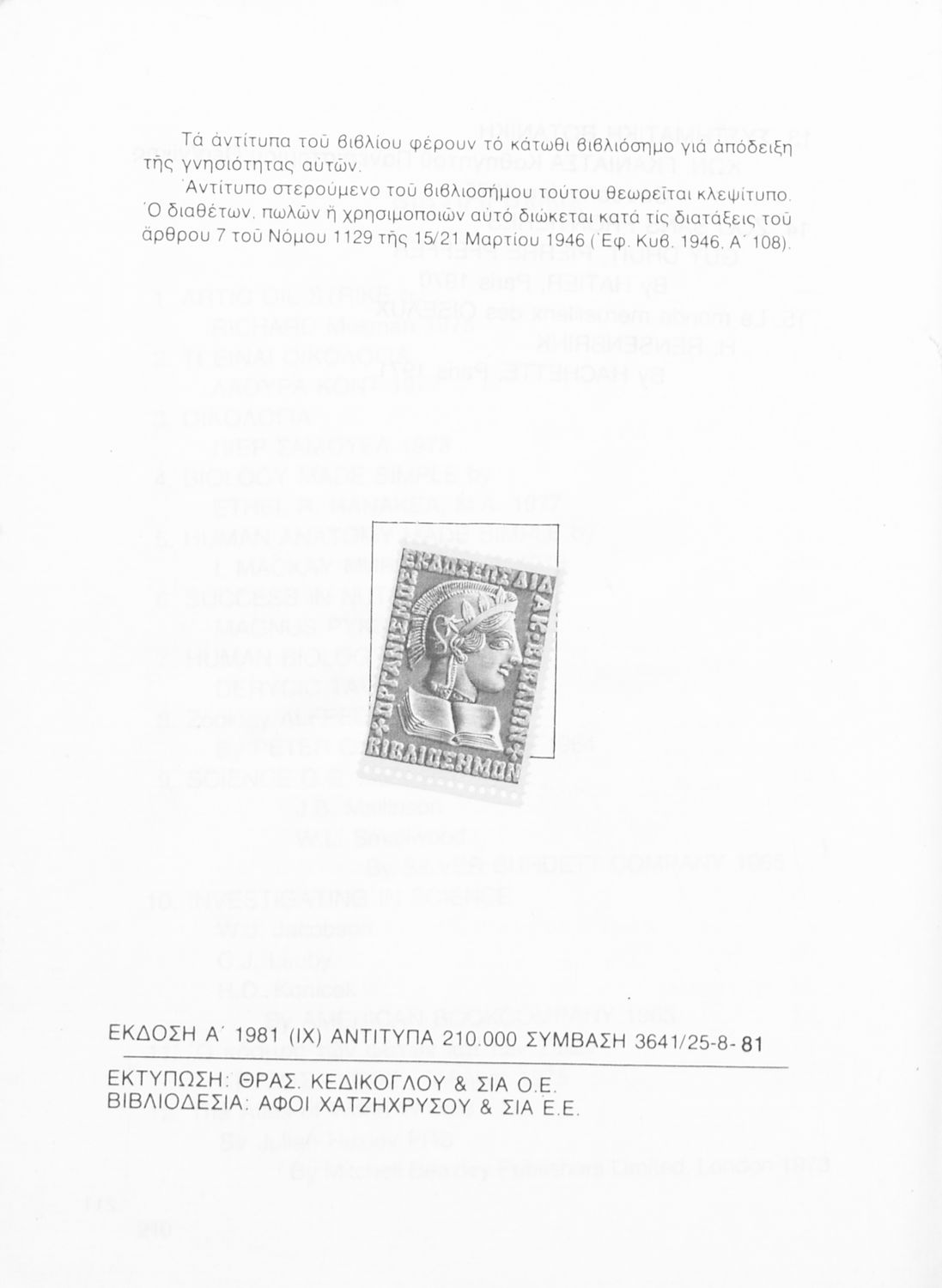 Εκδότης: Οργανισμός Εκδόσεως Διδακτικών Βιβλίων Έτος έκδοσης: 1981 Τόπος έκδοσης: Αθήνα Έκδοση: 1η Υπουργική απόφαση / Σύμβαση: 3641/25-8-1981 |