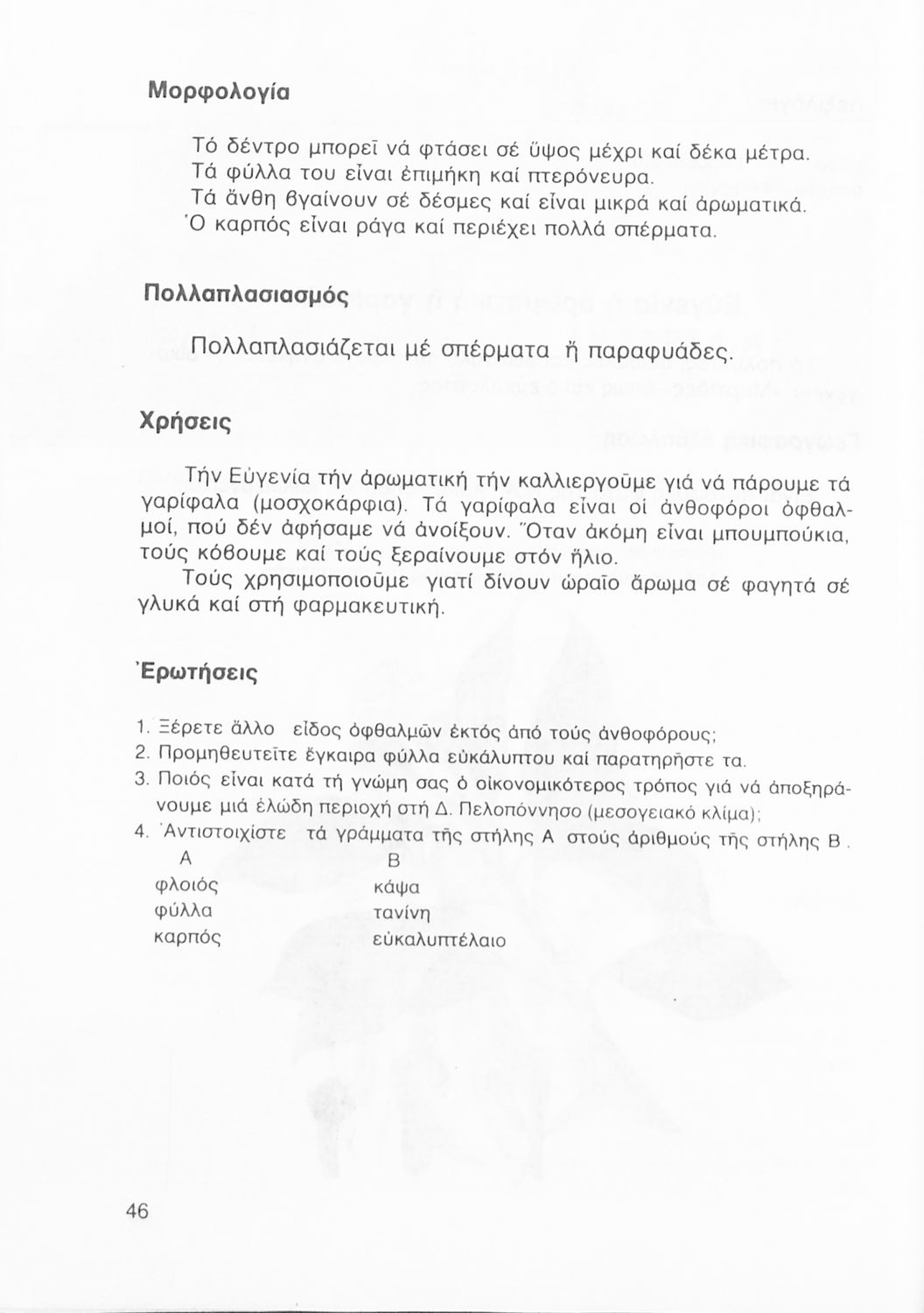 Σχολικό εγχειρίδιο Φυσιογνωσίας της ΣΤ΄ Δημοτικού το οποίο μέσα από μεγάλη ποικιλία εικόνων εξοικειώνει τους μαθητές με τα διαφορετικά είδη φυτών και ζώων, τους τρόπους πολλαπλασιασμού τους και τα μέρη στα οποία συναντώνται.