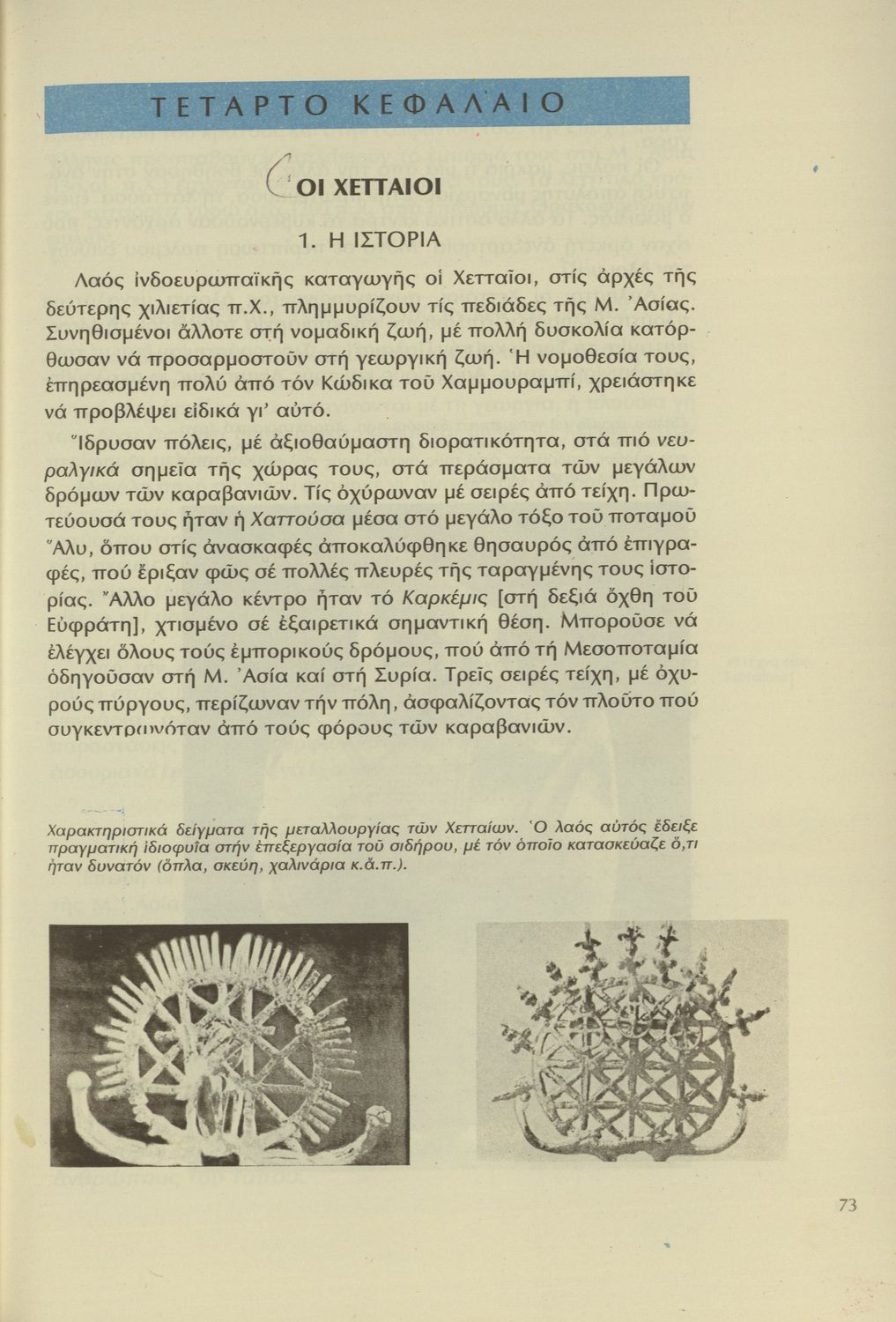 Βαθμίδα εκπαίδευσης: Δευτεροβάθμια Τάξη: Α' Γυμνασίου Μάθημα: Ιστορία Γλώσσα: Δημοτική Παρουσίαση περιεχομένου: Σχολικό εγχειρίδιο Ιστορίας Α΄ Γυμνασίου που καλύπτει την περίοδο από την περίοδο από την εμφάνιση των πρώτων πολιτισμών μέχρι τους Καρχηδονικούς Πολέμους. Περιλαμβάνει χρονολόγιο και γλωσσάριο με επεξήγηση ορισμών. |
