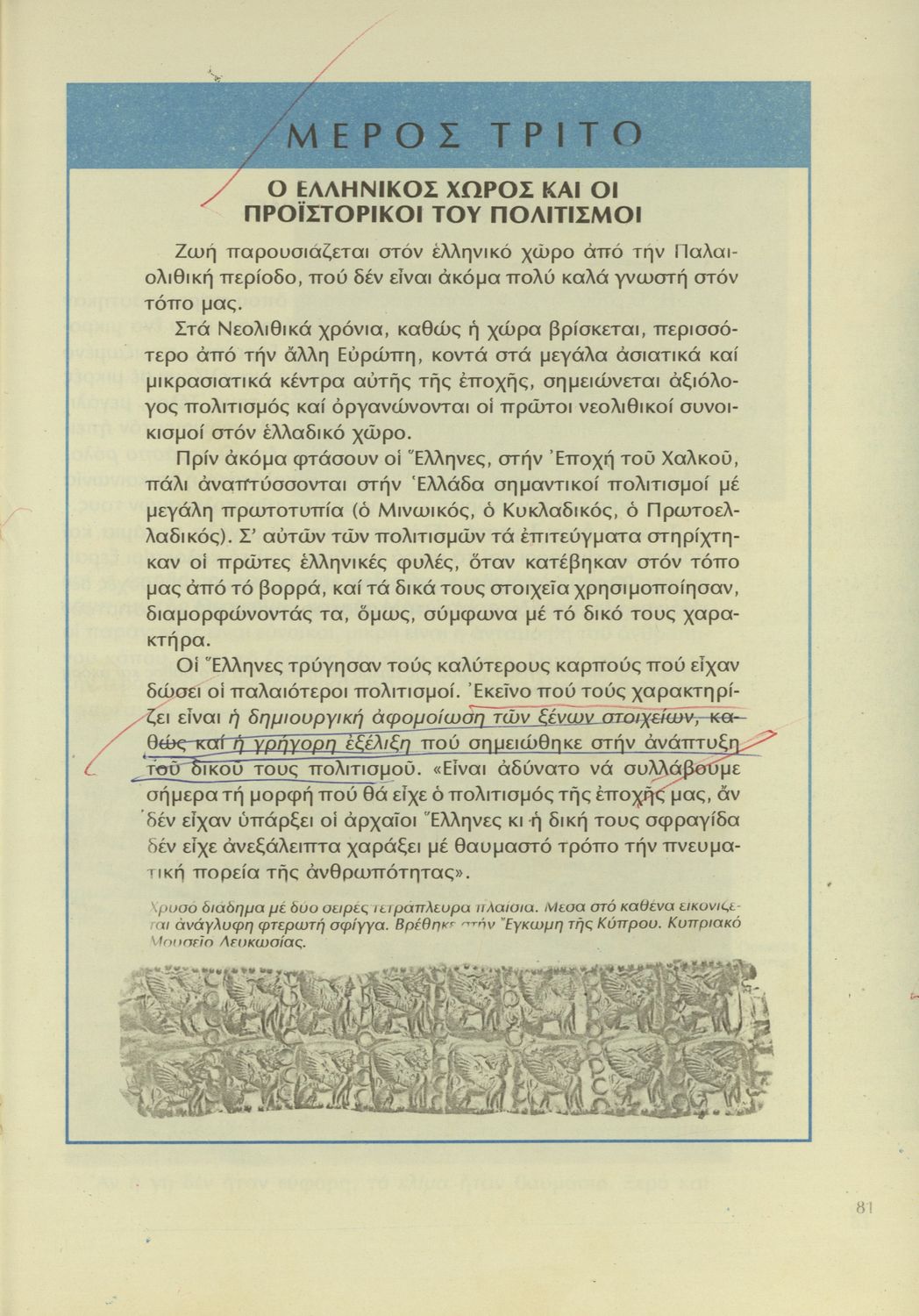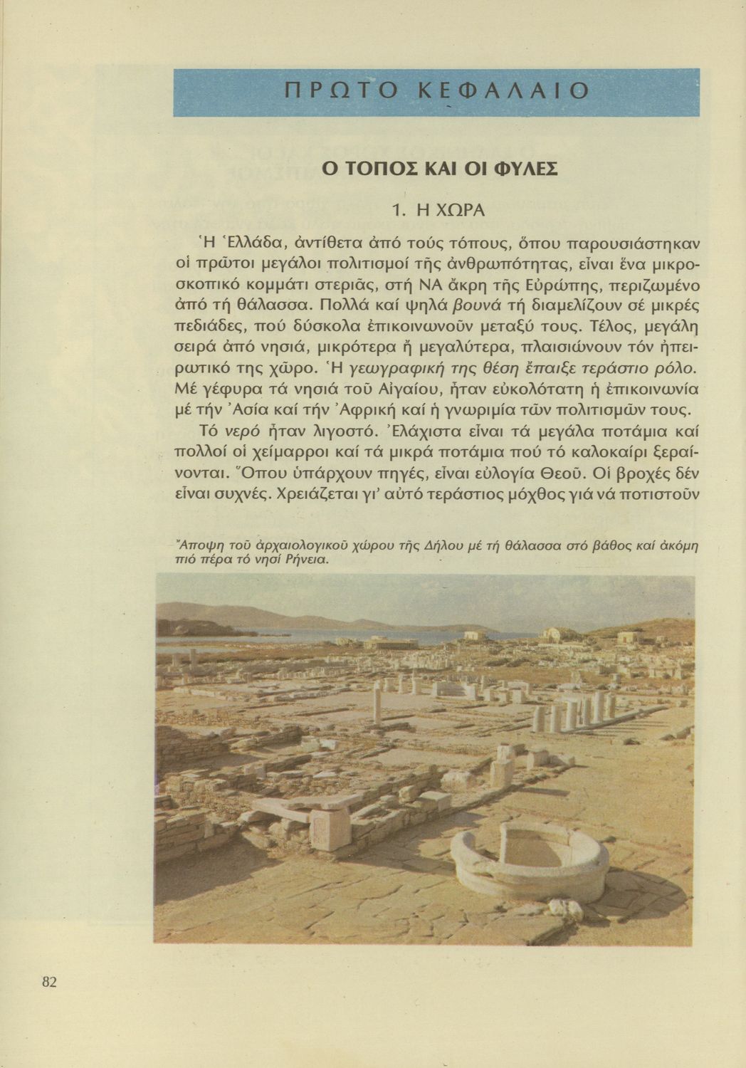 Βαθμίδα εκπαίδευσης: Δευτεροβάθμια Τάξη: Α' Γυμνασίου Μάθημα: Ιστορία Γλώσσα: Δημοτική Παρουσίαση περιεχομένου: Σχολικό εγχειρίδιο Ιστορίας Α΄ Γυμνασίου που καλύπτει την περίοδο από την περίοδο από την εμφάνιση των πρώτων πολιτισμών μέχρι τους Καρχηδονικούς Πολέμους. Περιλαμβάνει χρονολόγιο και γλωσσάριο με επεξήγηση ορισμών. |