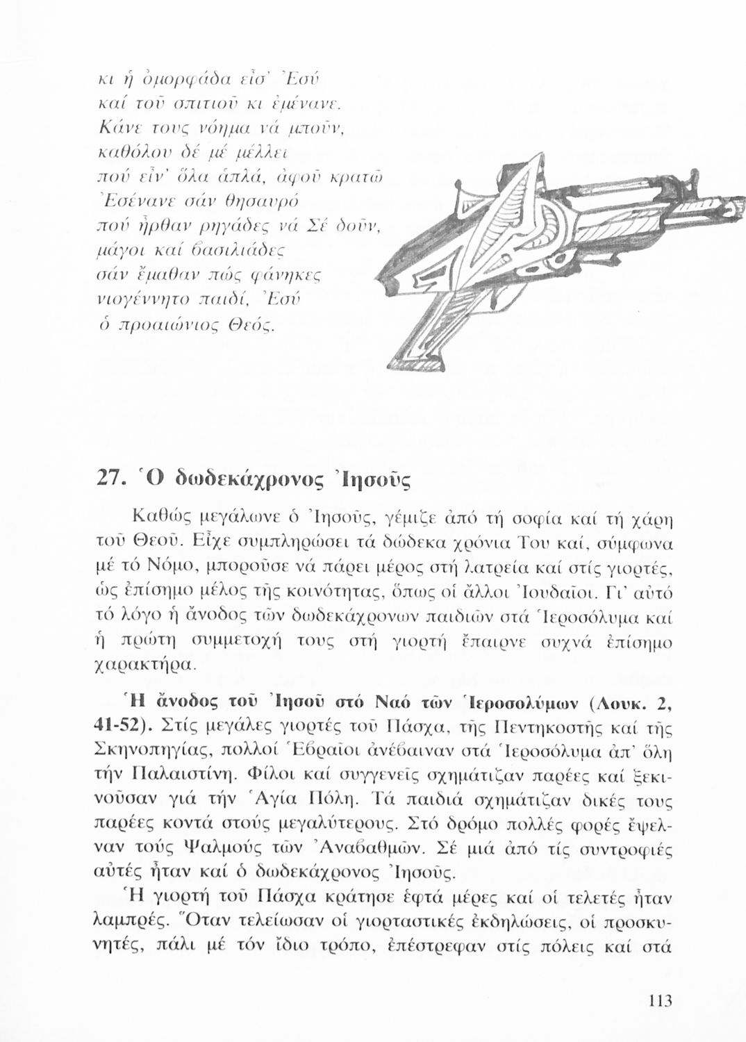 Σχολικό εγχειρίδιο Θρησκευτικών Α΄ Γυμνασίου που μεταφέρει το Λόγο του Θεού όπως εκφέρεται στα Ευαγγέλια και άλλα ιερά κείμενα της ορθόδοξης χριστιανικής παράδοσης.