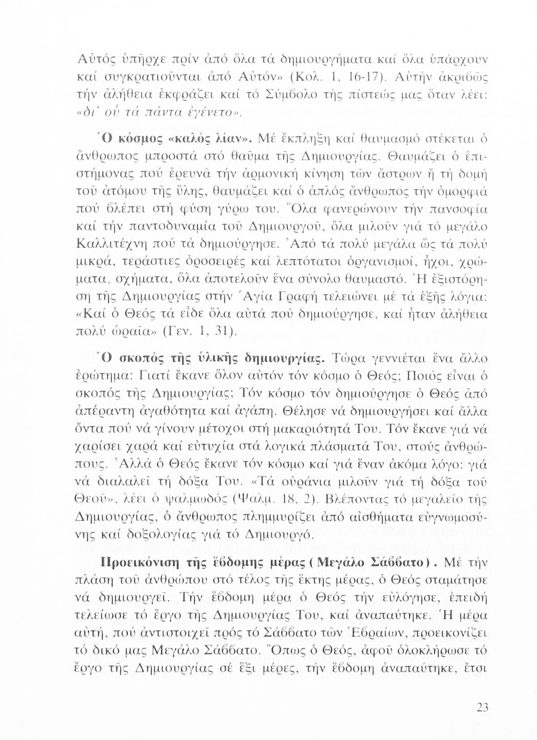 Τίτλος: Ο λόγος του Θεού. Το θαύμα της δημιουργίας και της σωτηρίας Α΄ τάξη Γυμνασίου