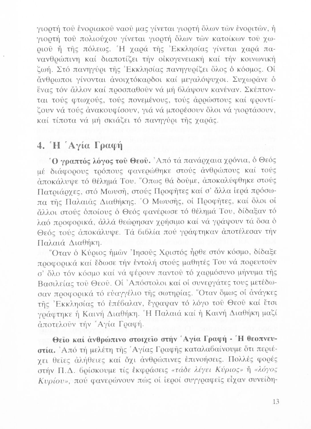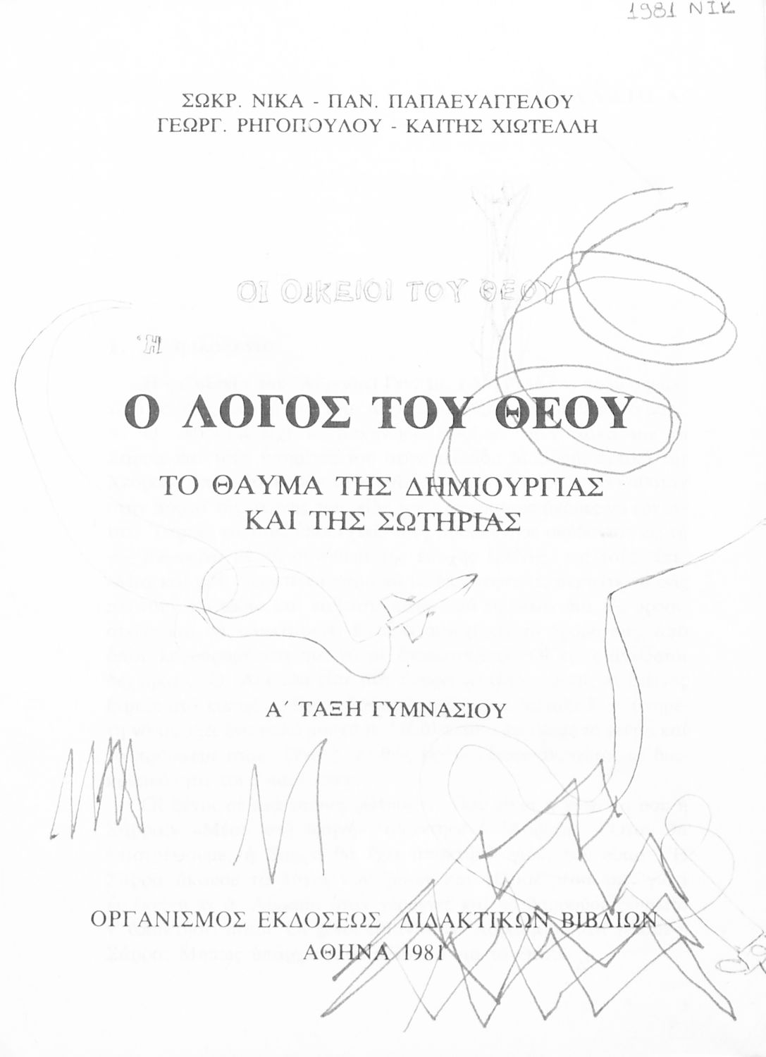 Σχολικό εγχειρίδιο Θρησκευτικών Α΄ Γυμνασίου που μεταφέρει το Λόγο του Θεού όπως εκφέρεται στα Ευαγγέλια και άλλα ιερά κείμενα της ορθόδοξης χριστιανικής παράδοσης.