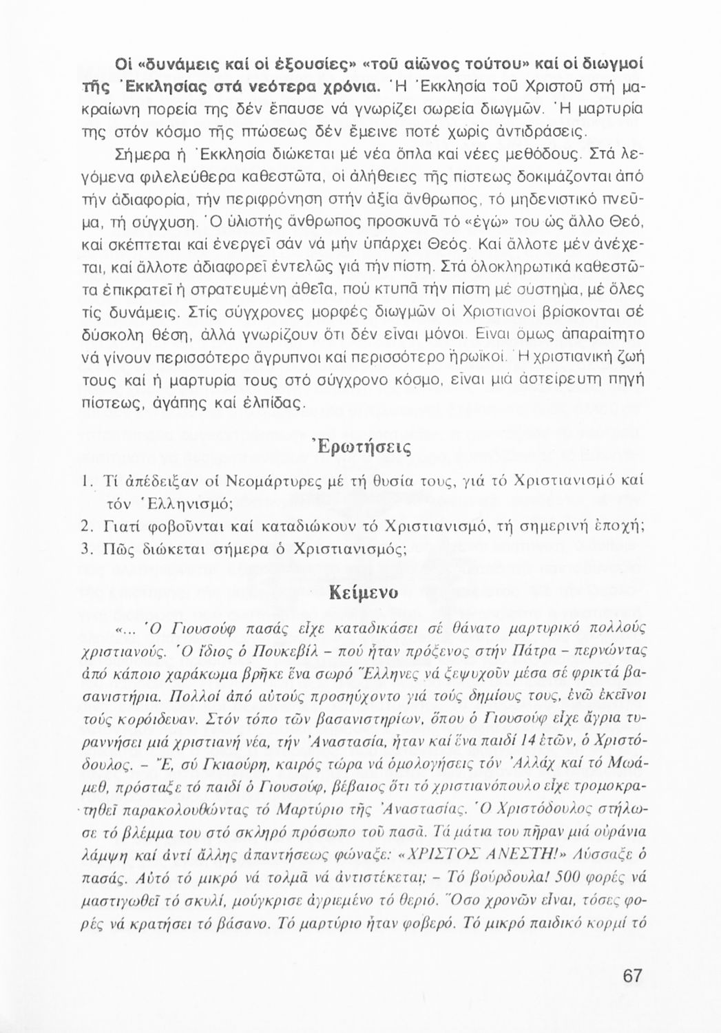 Σχολικό εγχειρίδιο Θρησκευτικών Α΄ Λυκείου που περιέχει την ιστορία της Ορθόδοξης Εκκλησίας από την ίδρυσή της μέχρι την ίδρυση του Παγκοσμίου Συμβουλίου των Εκκλησιών.