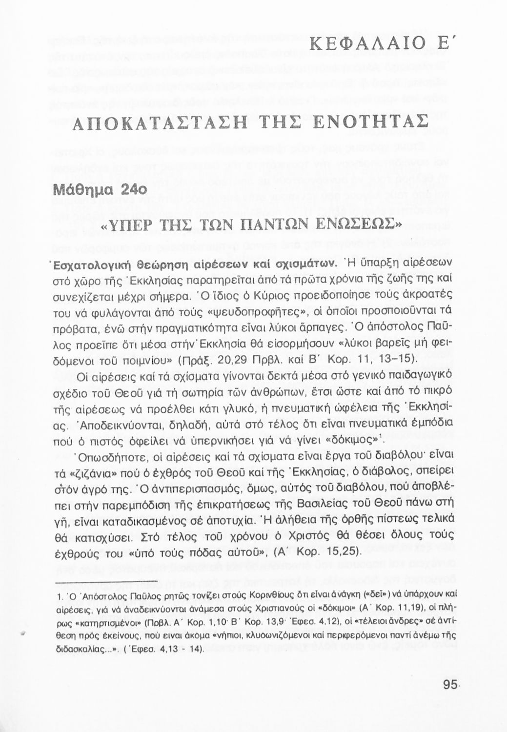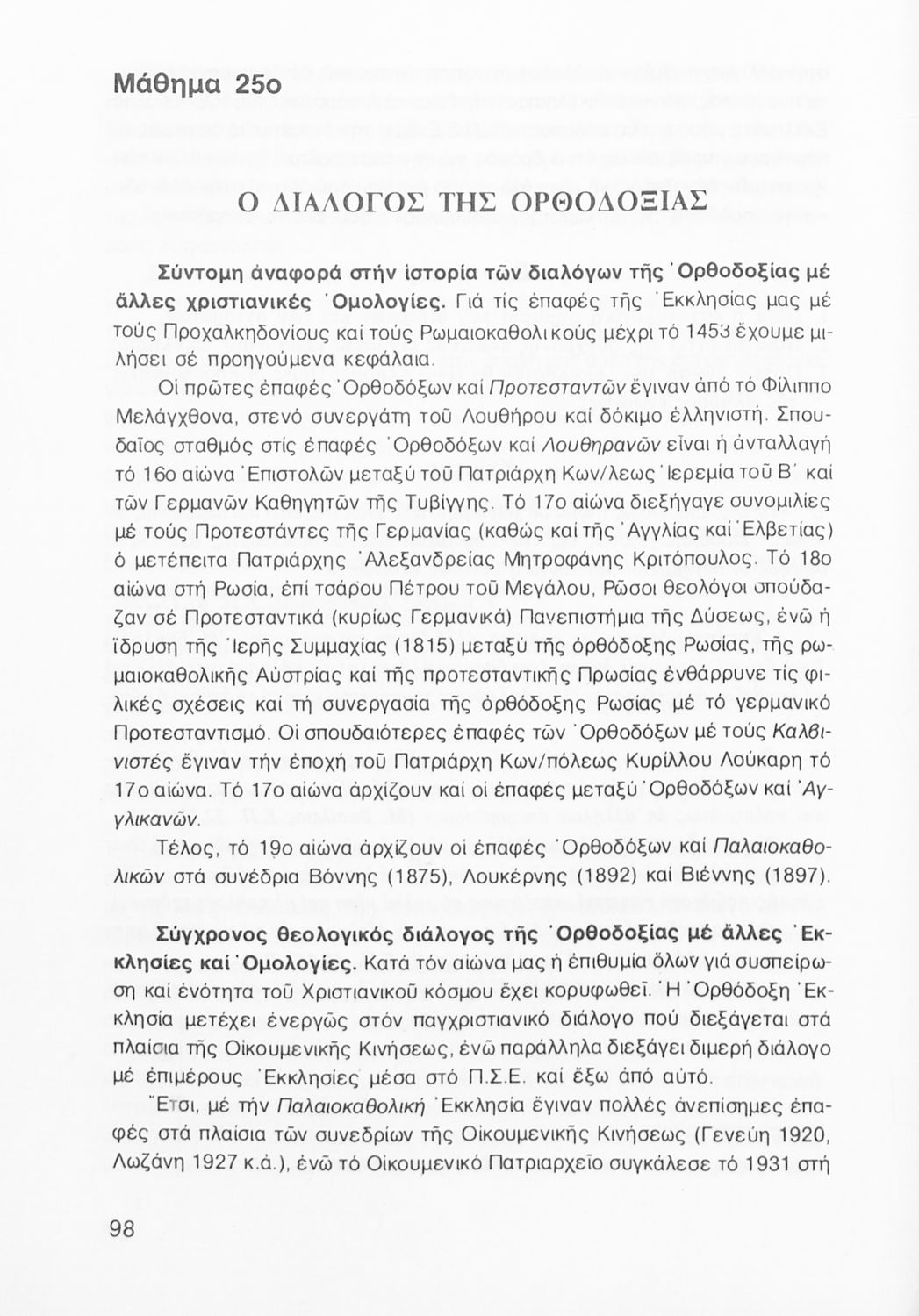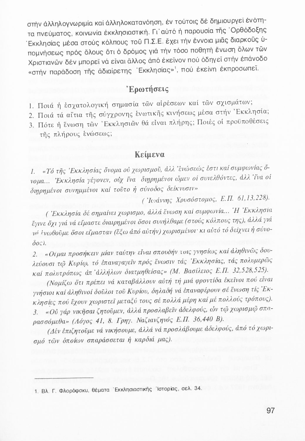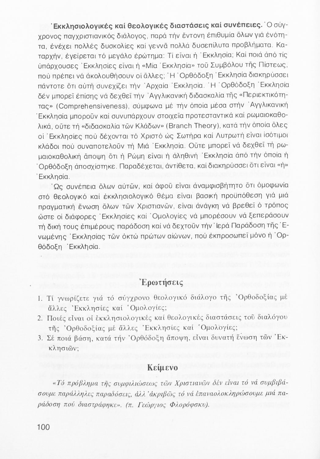Σχολικό εγχειρίδιο Θρησκευτικών Α΄ Λυκείου που περιέχει την ιστορία της Ορθόδοξης Εκκλησίας από την ίδρυσή της μέχρι την ίδρυση του Παγκοσμίου Συμβουλίου των Εκκλησιών.