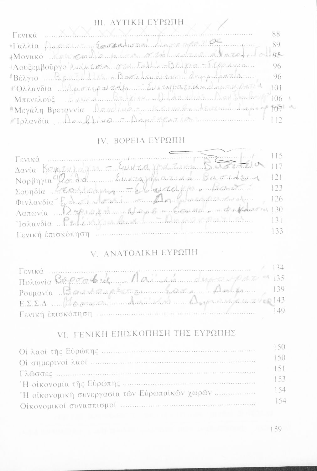 Σχολικό εγχειρίδιο Γεωγραφίας Β' Γυμνασίου που παρουσιάζει τις χώρες της Ευρώπης από γεωμορφολογική, πολιτική, πολιτισμική και οικονομική άποψη. Περιέχει και αναφορά στις οικονομικές σχέσεις της Ελλάδας με τα ευρωπαϊκά κράτη.