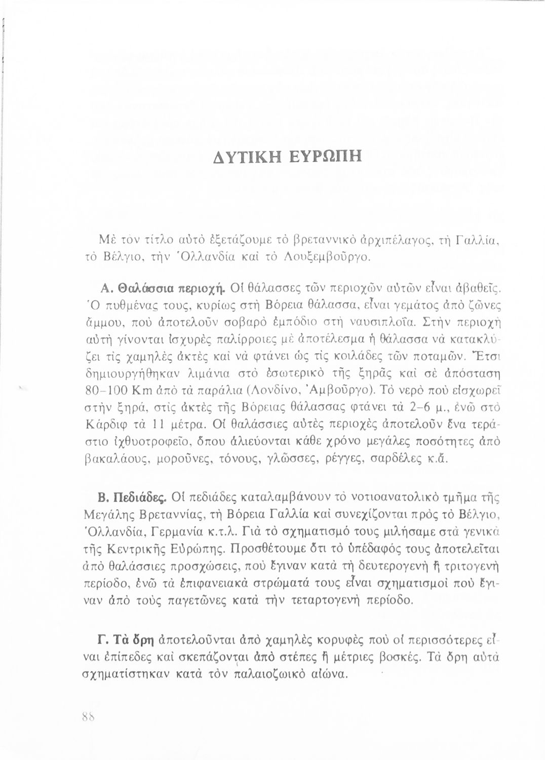 Σχολικό εγχειρίδιο Γεωγραφίας Β' Γυμνασίου που εξετάζει τις χώρες της Ευρώπης, πλην της Ελλάδας, από γεωμορφολογική, οικονομική και πολιτική άποψη.