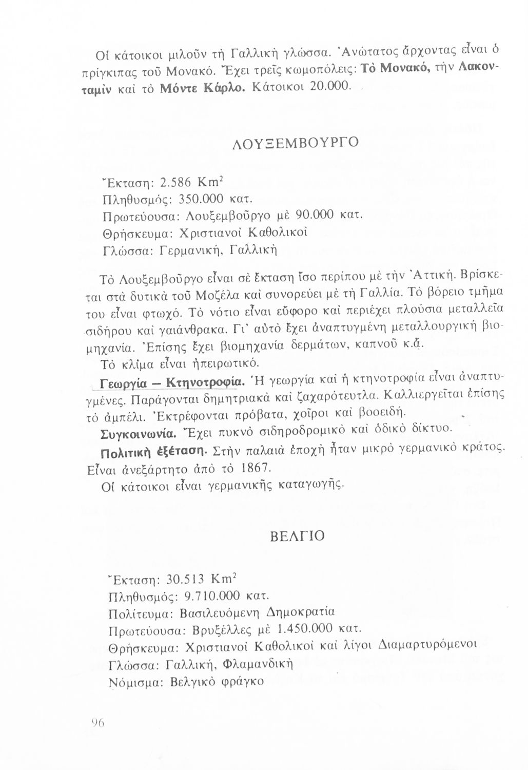 Σχολικό εγχειρίδιο Γεωγραφίας Β' Γυμνασίου που παρουσιάζει τις χώρες της Ευρώπης από γεωμορφολογική, πολιτική, πολιτισμική και οικονομική άποψη. Περιέχει και αναφορά στις οικονομικές σχέσεις της Ελλάδας με τα ευρωπαϊκά κράτη.