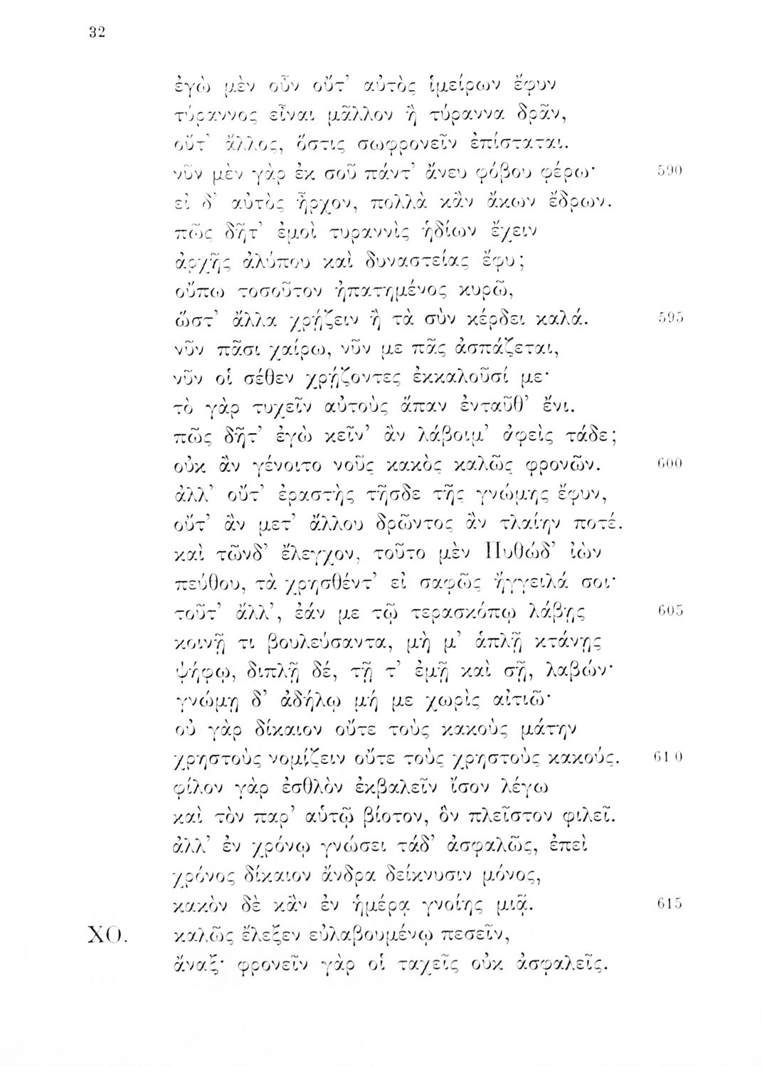 Σχολικό εγχειρίδιο του Γυμνασίου για το μάθημα των Αρχαίων Ελληνικών που περιέχει την τραγωδία του Σοφοκλή Οιδίπους Τύραννος, ερμηνευτικά και πραγματολογικά σχόλια και λεξιλογικές παρατηρήσεις.