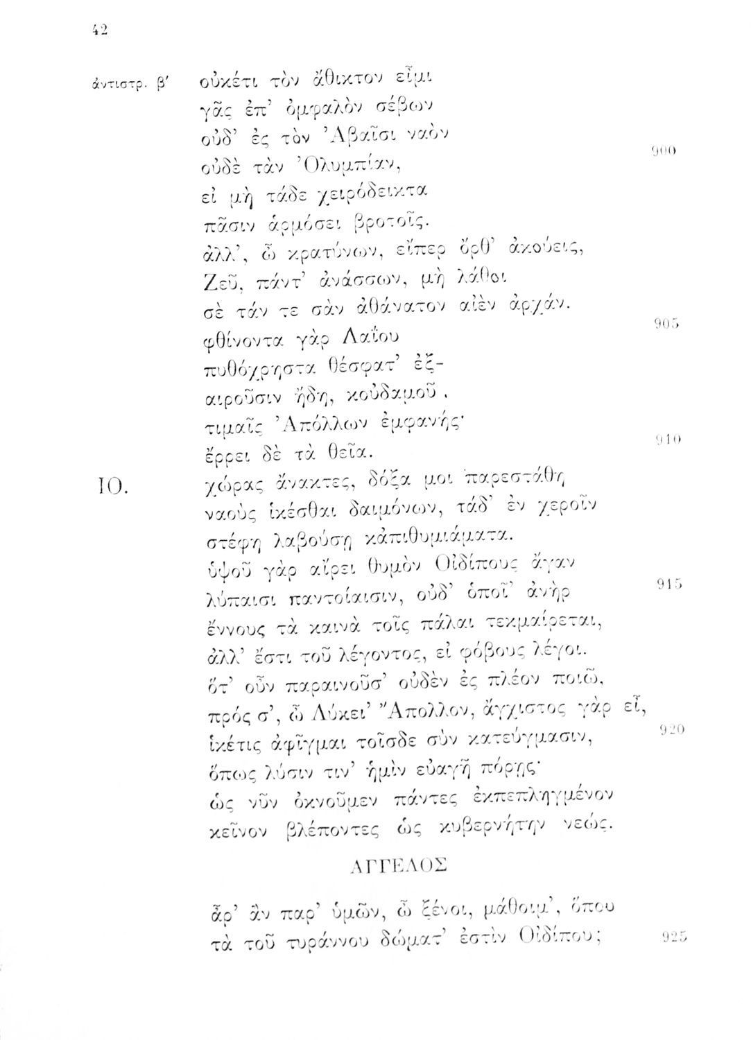 Σχολικό εγχειρίδιο του Γυμνασίου για το μάθημα των Αρχαίων Ελληνικών που περιέχει την τραγωδία του Σοφοκλή Οιδίπους Τύραννος, ερμηνευτικά και πραγματολογικά σχόλια και λεξιλογικές παρατηρήσεις.