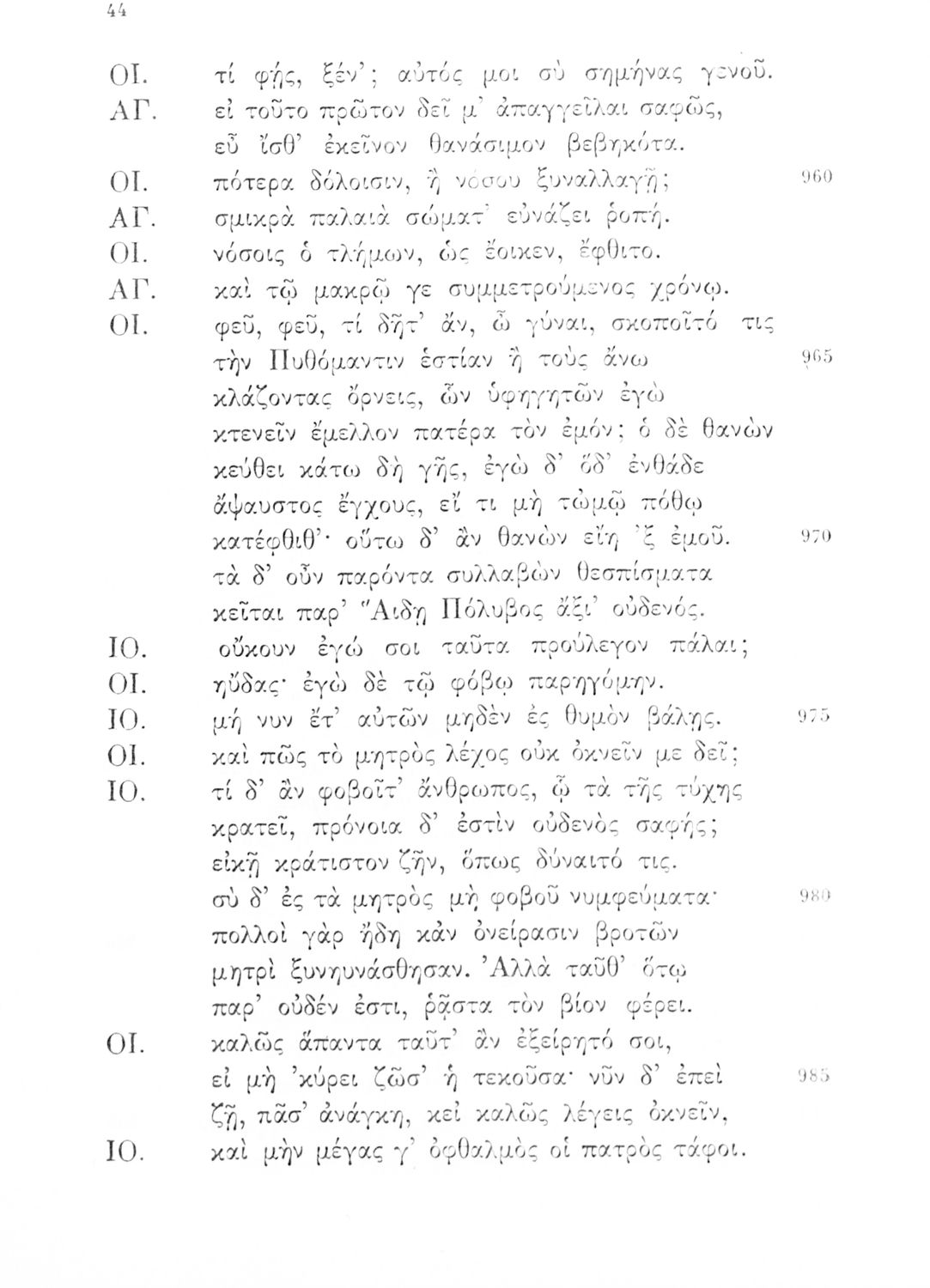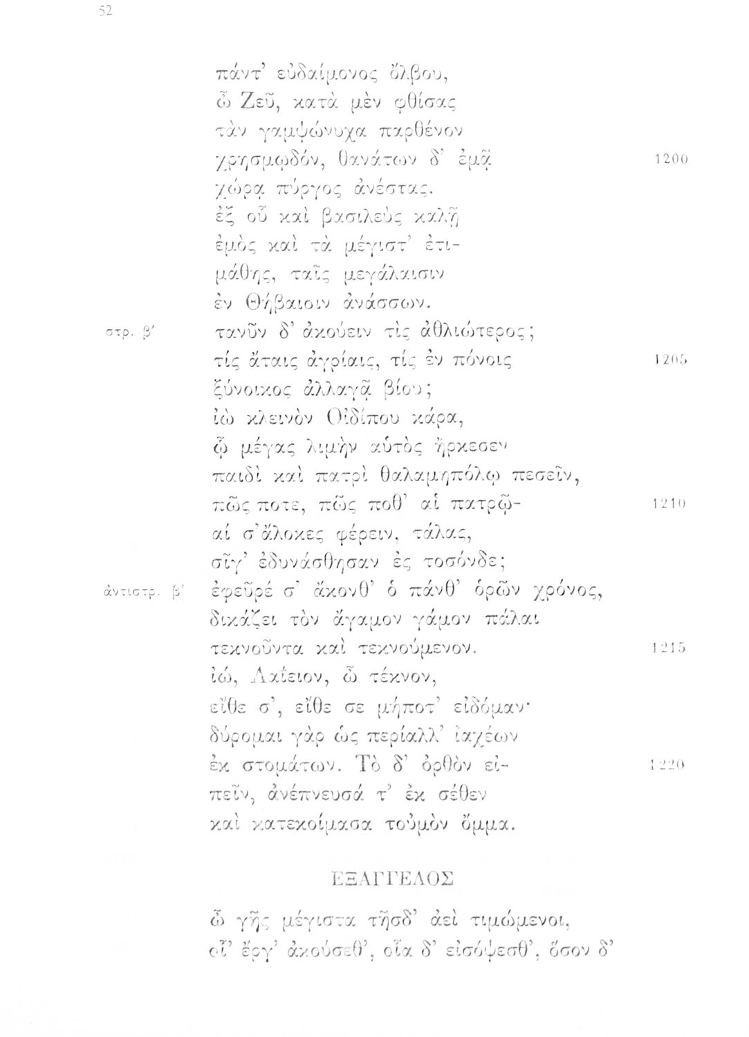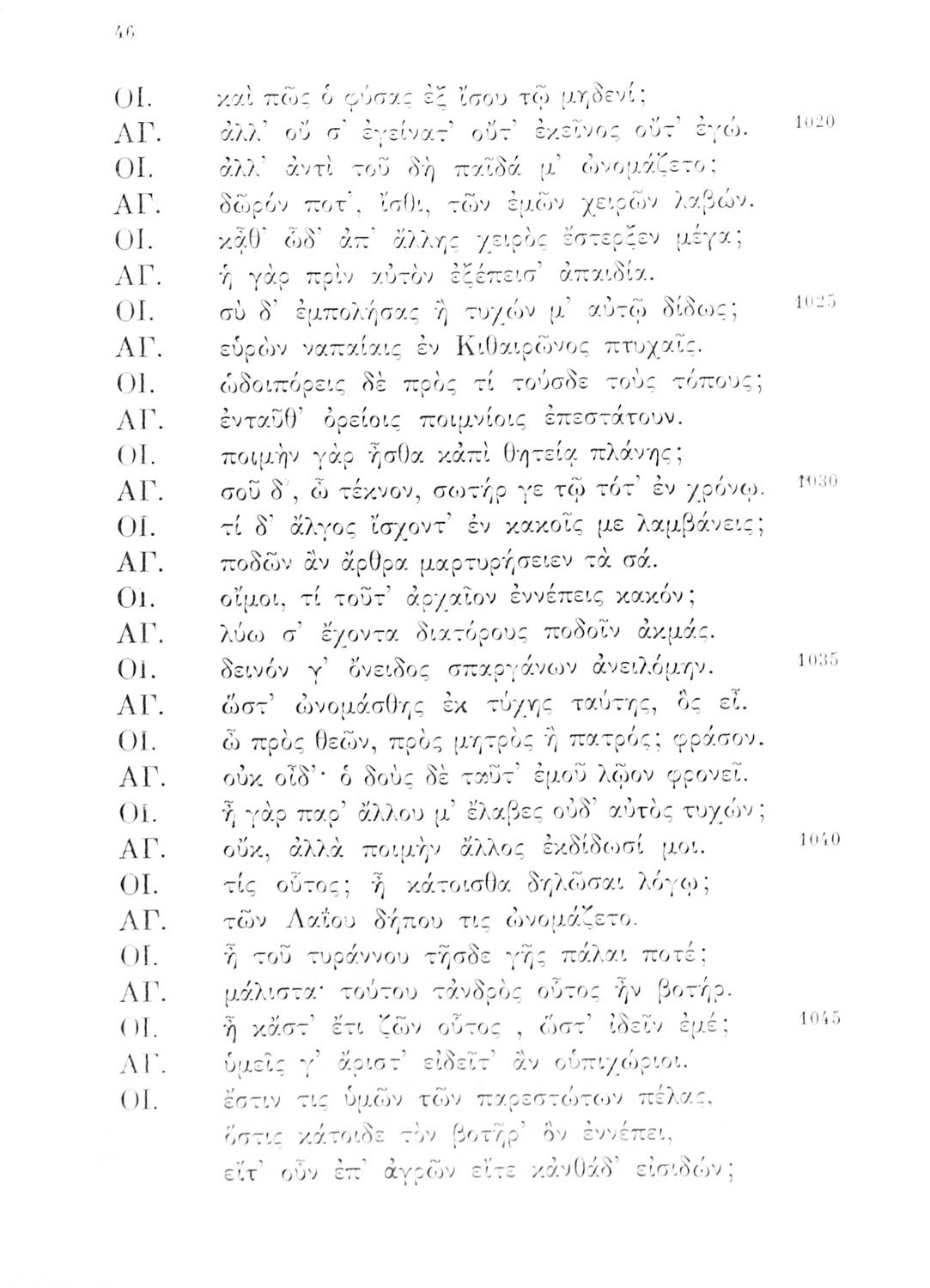 Σχολικό εγχειρίδιο Αρχαίων Ελληνικών που περιλαμβάνει τις τραγωδίες του Σοφοκλή Οιδίπους Τύραννος και Αντιγόνη, εισαγωγή και ερμηνευτικά σχόλια.