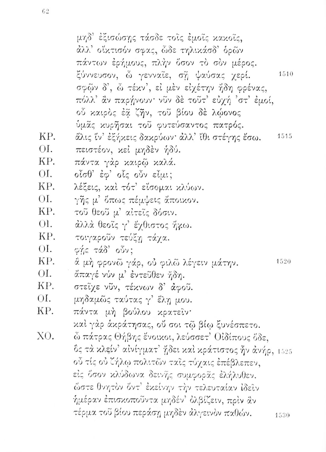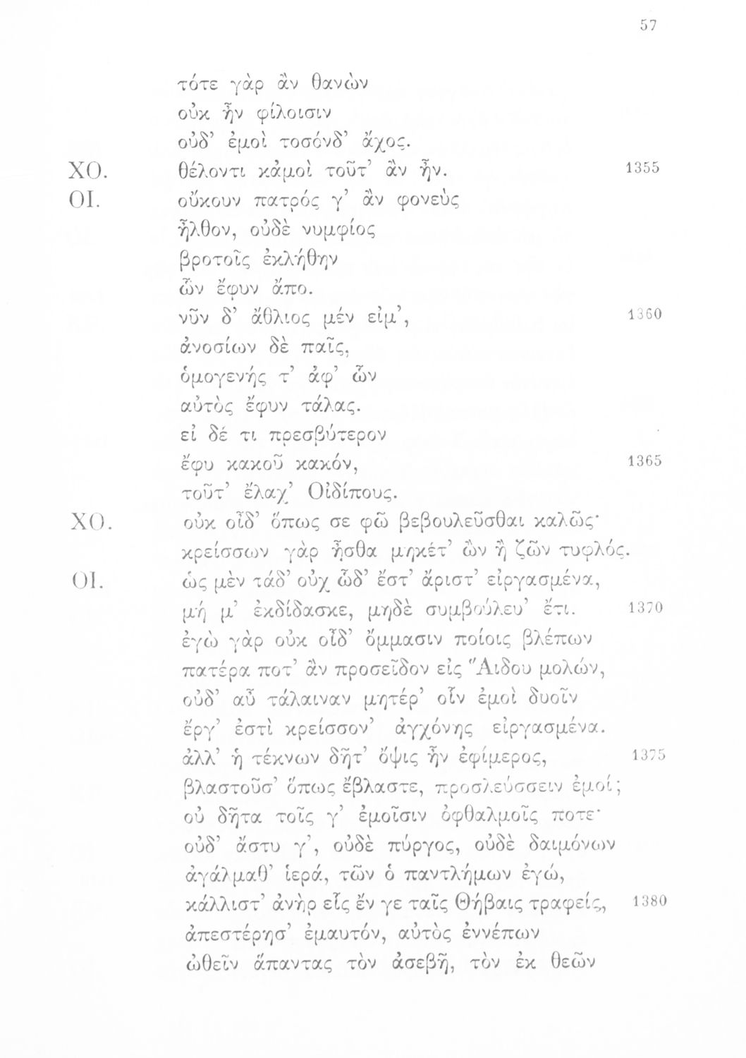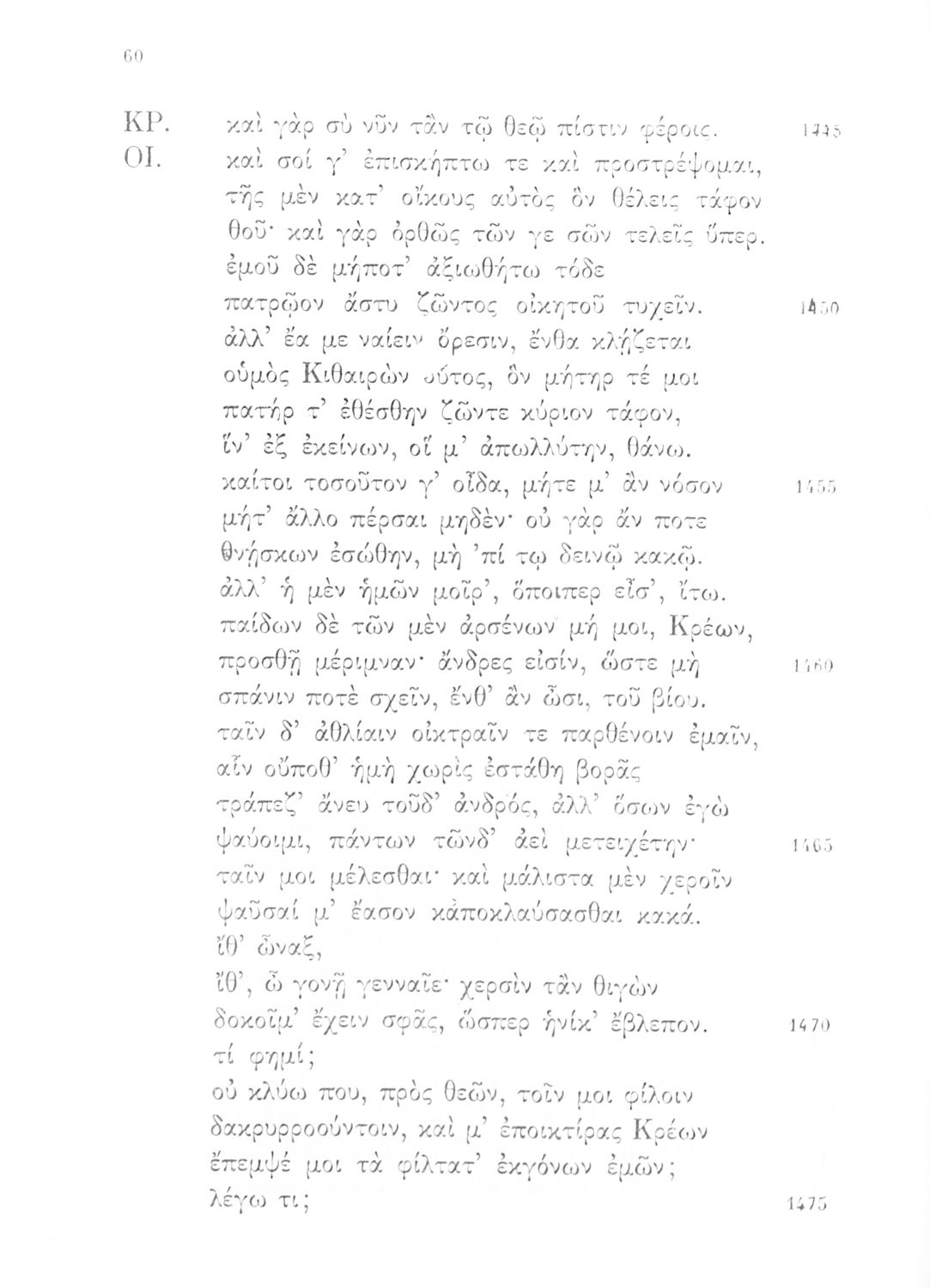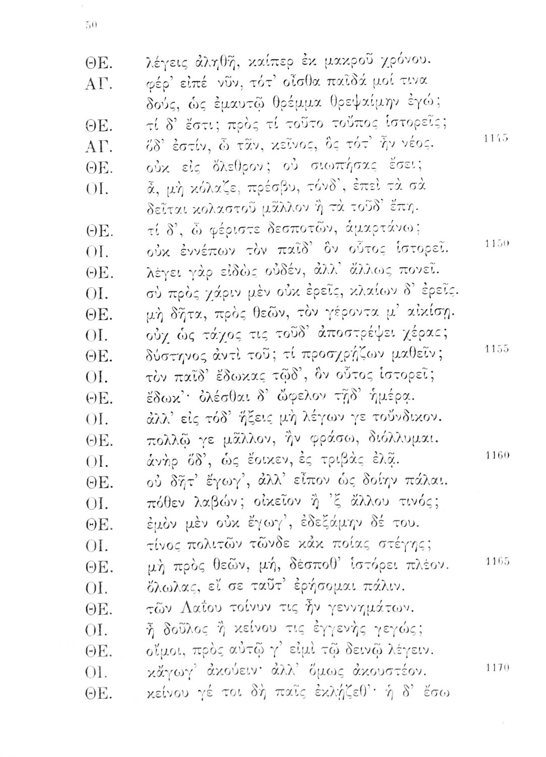 Σχολικό εγχειρίδιο Αρχαίων Ελληνικών της Γ΄ Λυκείου το οποίο περιλαμβάνει το έργο του Σοφοκλή 'Οιδίπους Τύραννος'. Το βιβλίο ξεκινάει με μια εισαγωγή στην αρχαία ελληνική τραγωδία και βιογραφικά στοιχεία του Σοφοκλή. Στη συνέχεια παρουσιάζει το εν λόγω κείμενο το οποίο συνοδεύεται από ερμηνευτικές και γλωσσικές σημειώσεις.