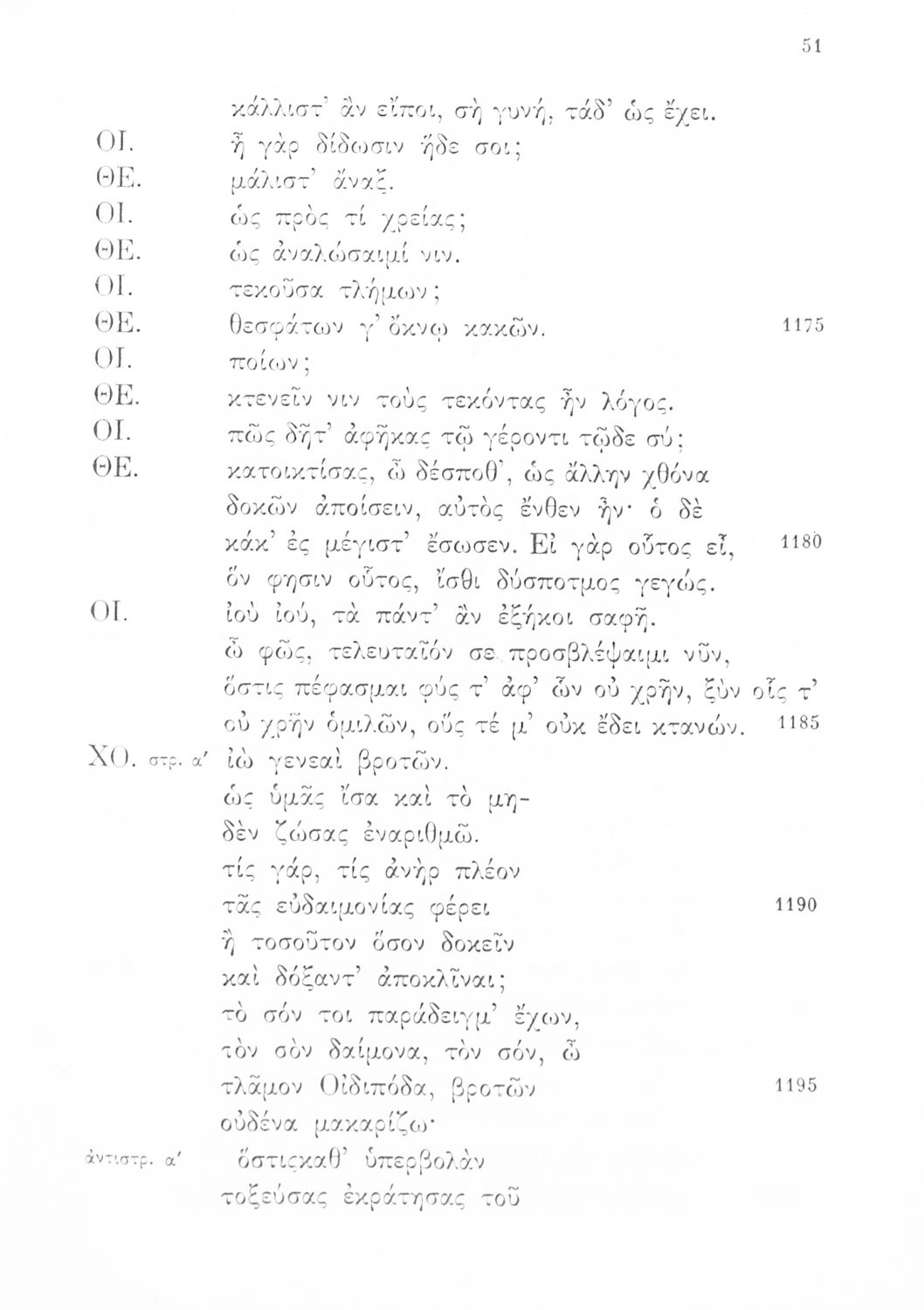 Σοφοκλή Οιδίπους Τύραννος, Γ΄ Λυκείου