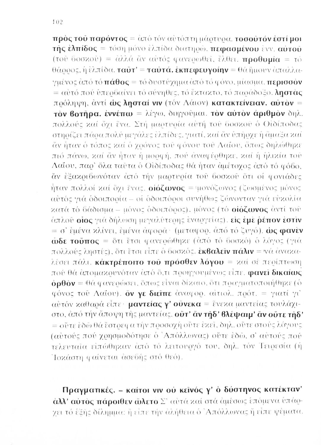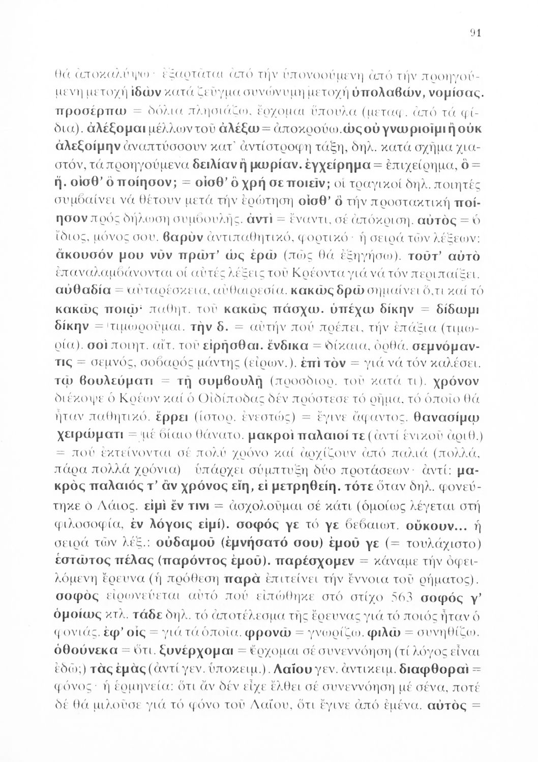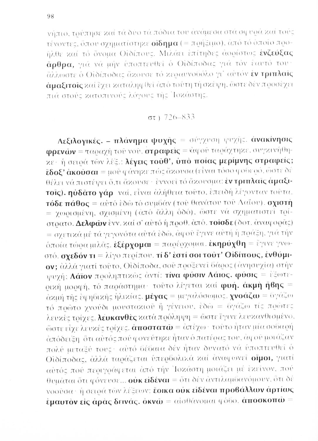 Σχολικό εγχειρίδιο Αρχαίων Ελληνικών της Γ΄ Λυκείου το οποίο περιλαμβάνει το έργο του Σοφοκλή 'Οιδίπους Τύραννος'. Το βιβλίο ξεκινάει με μια εισαγωγή στην αρχαία ελληνική τραγωδία και βιογραφικά στοιχεία του Σοφοκλή. Στη συνέχεια παρουσιάζει το εν λόγω κείμενο το οποίο συνοδεύεται από ερμηνευτικές και γλωσσικές σημειώσεις.