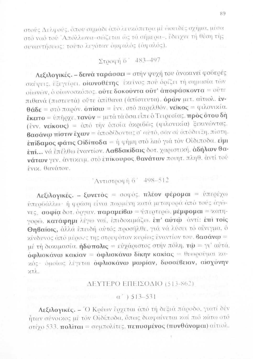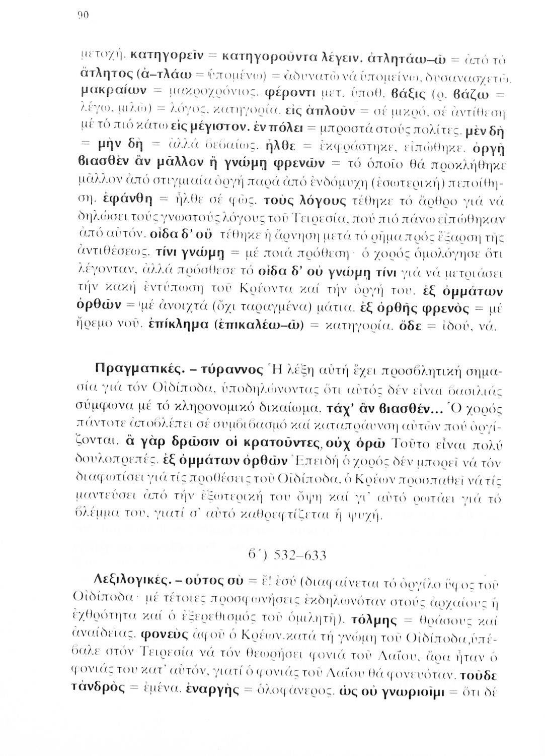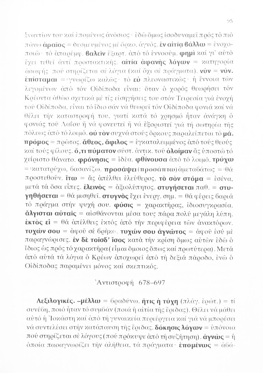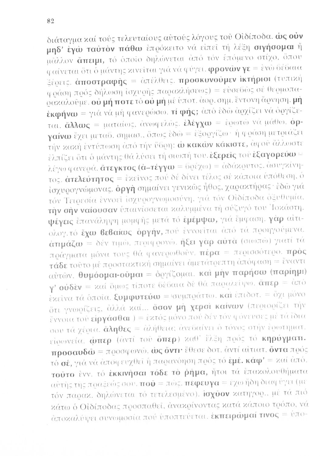 Σχολικό εγχειρίδιο του Γυμνασίου για το μάθημα των Αρχαίων Ελληνικών που περιέχει την τραγωδία του Σοφοκλή Οιδίπους Τύραννος, ερμηνευτικά και πραγματολογικά σχόλια και λεξιλογικές παρατηρήσεις.