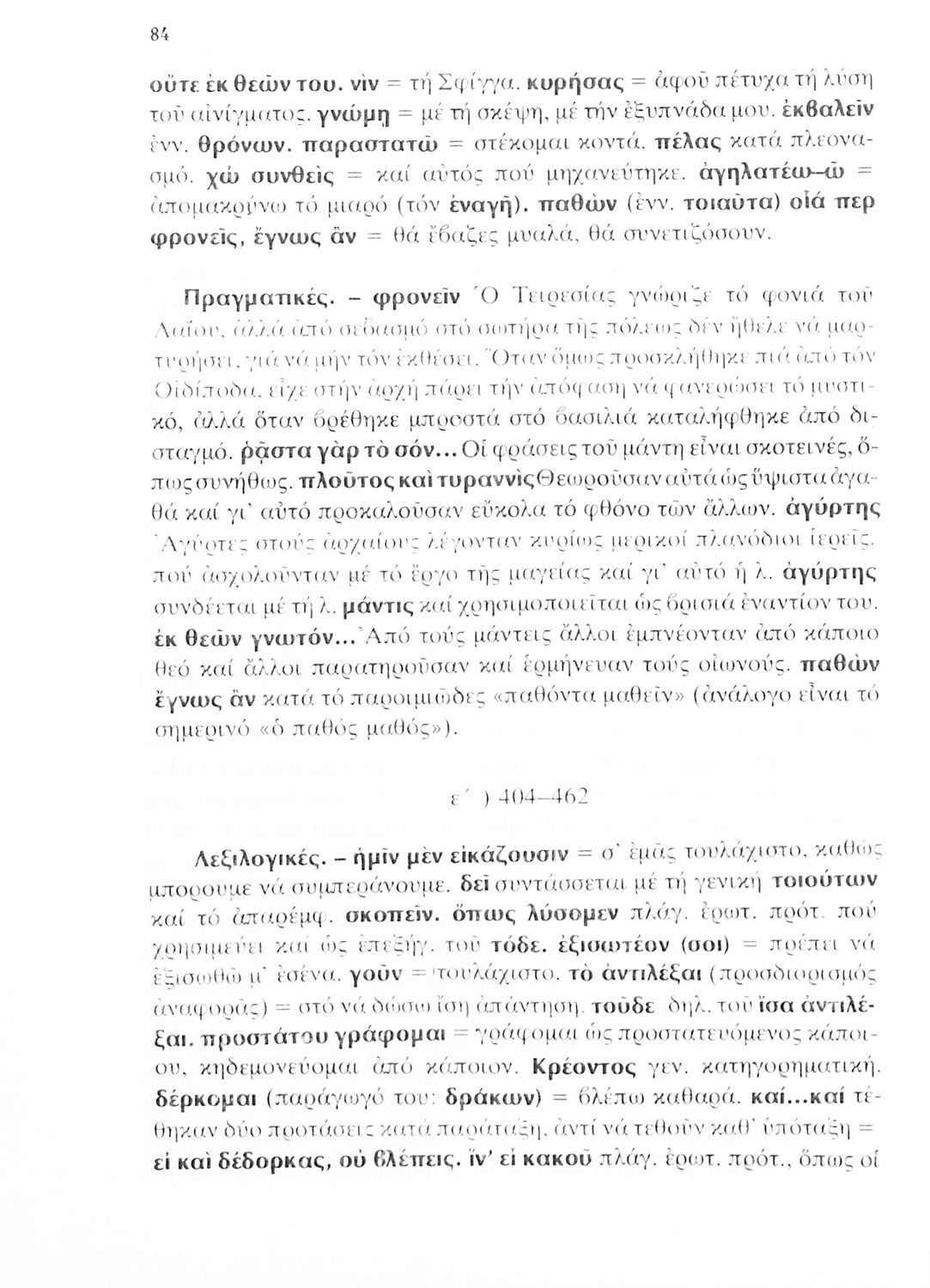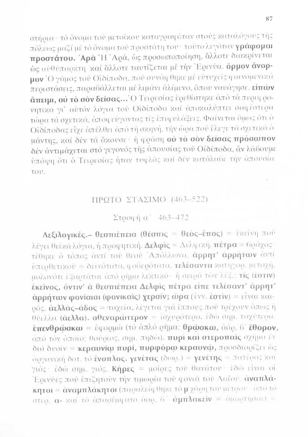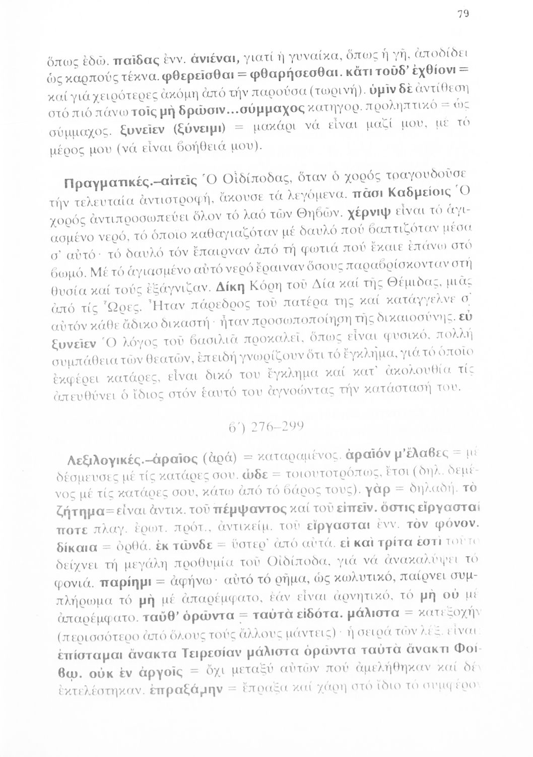 Σχολικό εγχειρίδιο του Γυμνασίου για το μάθημα των Αρχαίων Ελληνικών που περιέχει την τραγωδία του Σοφοκλή Οιδίπους Τύραννος, ερμηνευτικά και πραγματολογικά σχόλια και λεξιλογικές παρατηρήσεις.