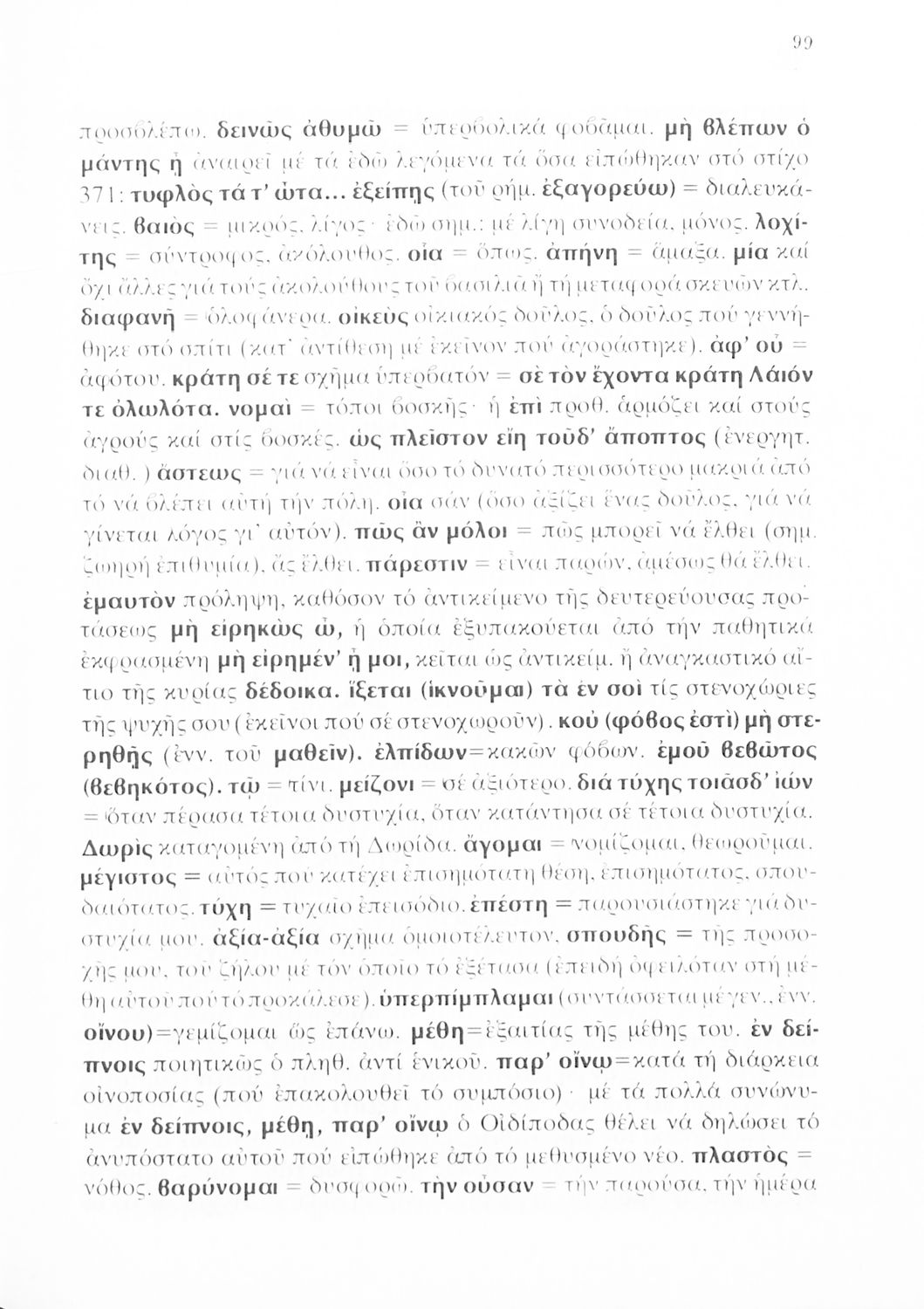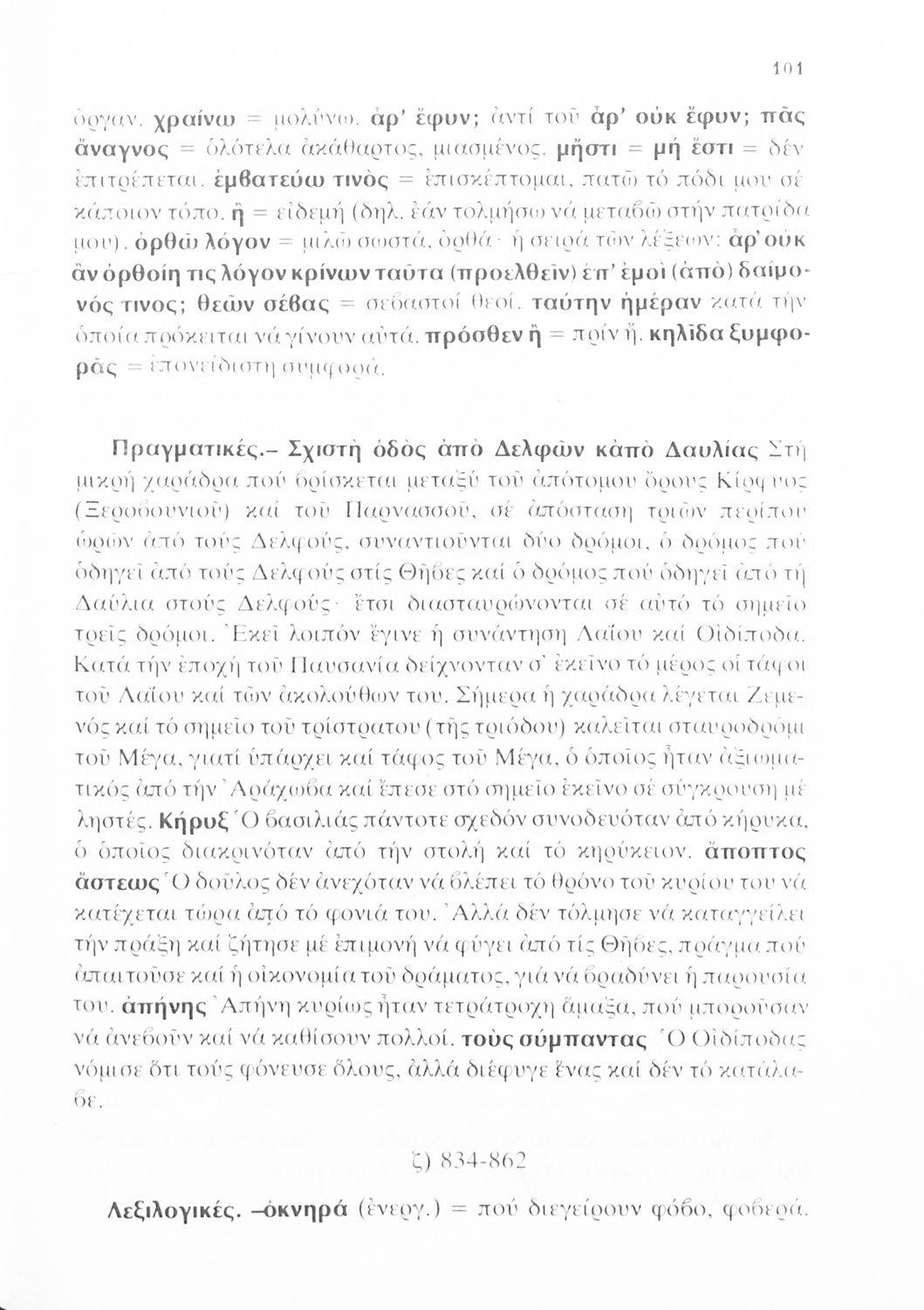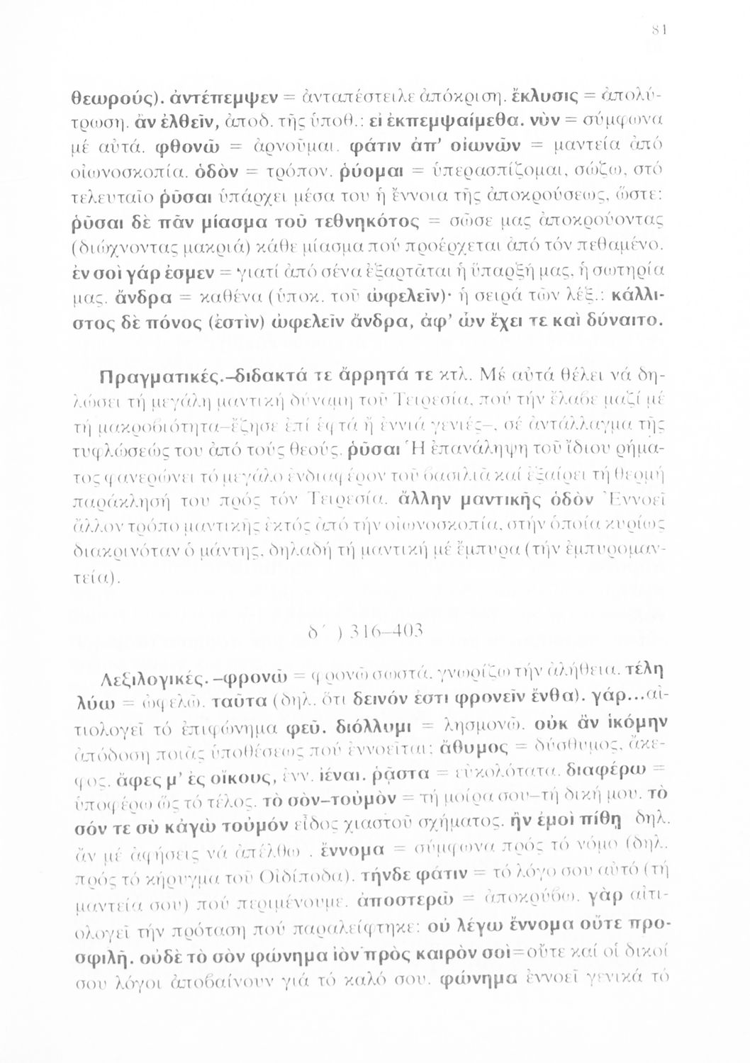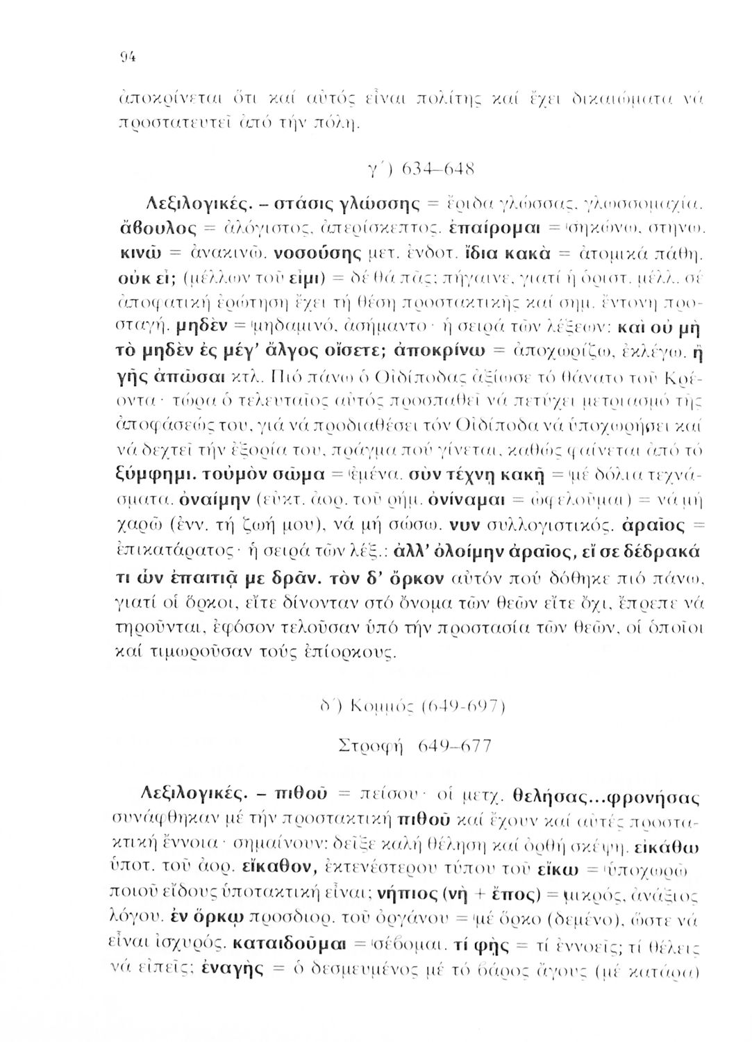 Σχολικό εγχειρίδιο του Γυμνασίου για το μάθημα των Αρχαίων Ελληνικών που περιέχει την τραγωδία του Σοφοκλή Οιδίπους Τύραννος, ερμηνευτικά και πραγματολογικά σχόλια και λεξιλογικές παρατηρήσεις.